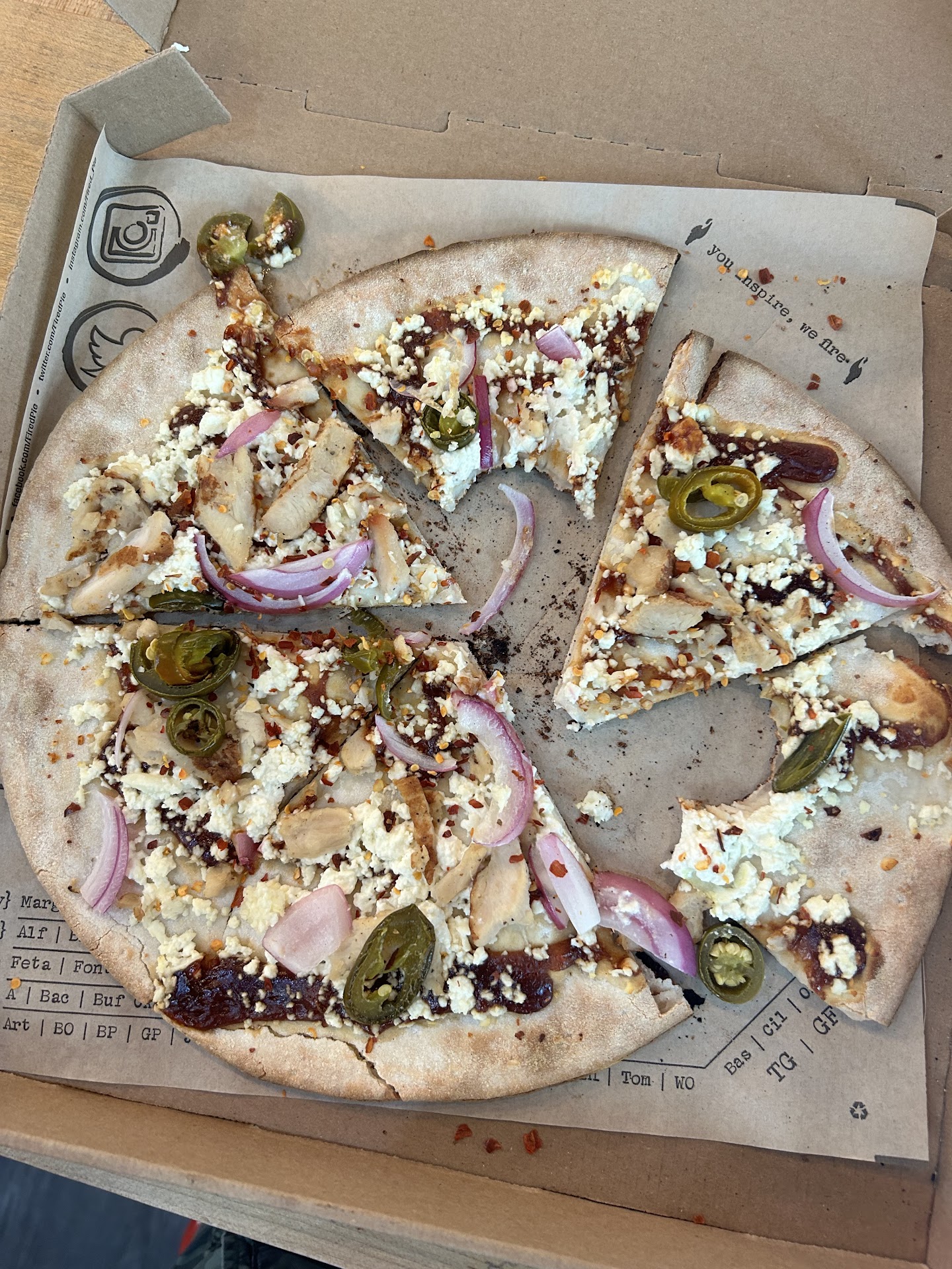 Read moreDrove from 33rd Avenue during lunch to this location. I knew I wanted either Fired Pie or Jimmy Johns (freaky fast), as I had limited time. I decided on Fired Pie, when I walked in it was great. Literally no one else in front of me. I walked right up and immediately ordered my pie. I was a little bummed as the shift manager making my pizza was a little stingy with the mushrooms but oh well I have noticed this place has gotten stingy with their meats and veggies lately. I paid and pie was placed into oven. For some reason the shift manager decided to hold a staff meeting right then and there directly in front of the oven. As she talked to 8 or 9 employees for over 10 min. Again in front of the oven, I watched my pizza burn. It wasn't until I made eye contact with an employee and made an annoyed face did they turn around to look at my pizza. The manager had them start another one immediately and continued to talk as if it was no bother to her. When the pizza was done, no apology or anything. My pizza was put in the oven at 2:06pm and I didn't get out of there until 2:23pm. Again, there were no customers ahead of me. I like Fire Pie, it's why I don't mind driving so far to get it on limited time. But I think I will pass on this...