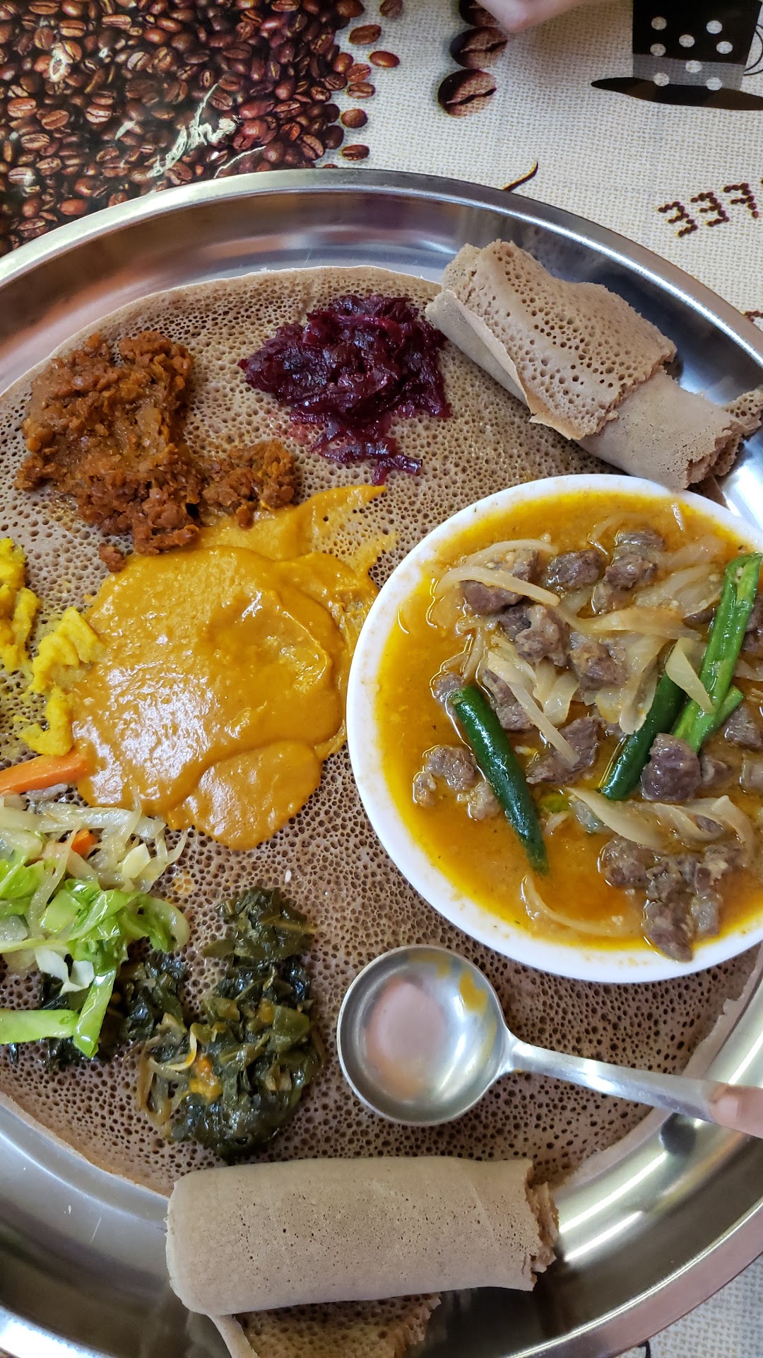From the moment I stepped inside, I was greeted with the warm, welcoming hospitality that Ethiopian culture is known for. The restaurant’s atmosphere is cozy yet vibrant, with traditional music and beautiful décor that instantly transports you to Addis Ababa.