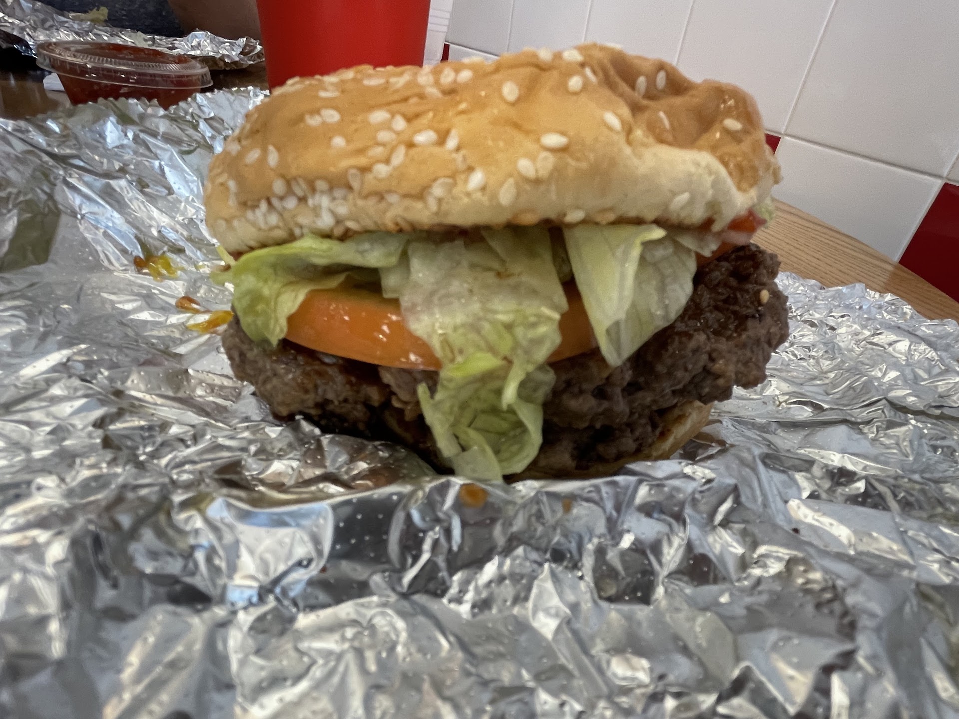 We as a team decided to come to Five Guys today to have a break from the stressors of work ourselves. Not only did the first order come through incorrect one of my coworkers had to have her burger remade (was put to the back of the line) and instead of addressing or giving us another option for our sides just simply did not give them to us.