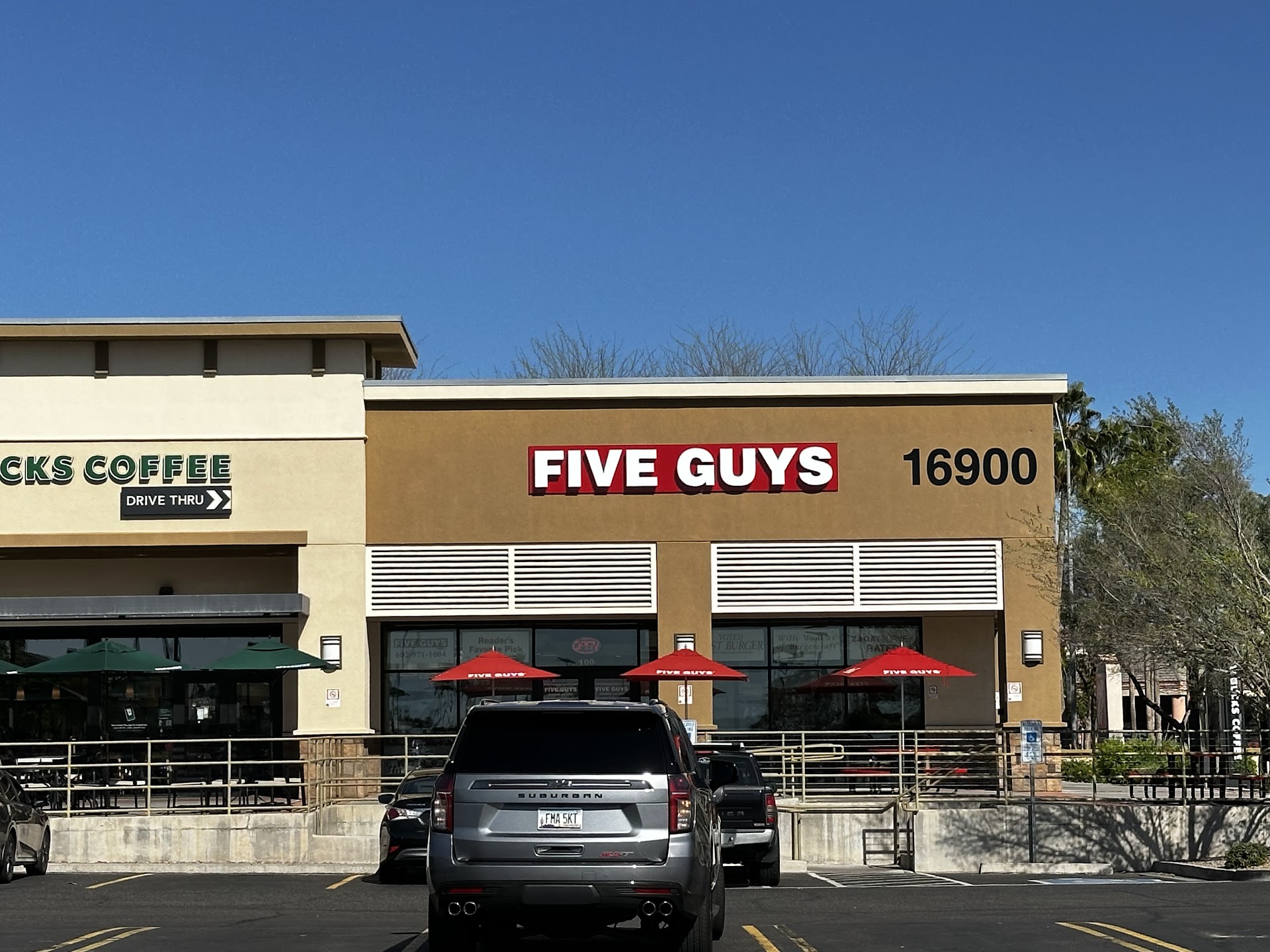 Read moreI pretty much like everything about Five Guys. I love the burgers, fries and atmosphere. My last order was a bacon cheeseburger and an order of fries. About $20. This Tatum and Bell location is convenient for me. I coupled my visit by picking up a locker order at the Home Depot across the street. There were two guys working at the time and they greeted me immediately. They were friendly. I told them my name and said it was an online order. He said, we got it, give me two minutes. I said I’m in no hurry, especially since I knew my burger would be fresh off the grill. I passed the time eating peanuts. There was only me and two other guys as customers at the time because it was midafternoon. This location is a clean, modern facility in a popular shopping area. There’s plenty of parking. I drove my order home to eat it and realized they put an extra patty on my burger. I didn’t mind it at all in fact I loved the burger and had to use tons of napkins. The fries… they’re always great. They give you two orders. One order that fits in the cup in the bag and the other order are the fries that didn’t fit in the cup. Didn’t disappoint. I...
