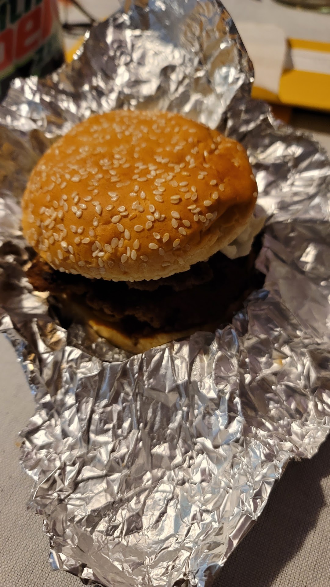 Read moreI forgot that a "regular" burger at 5 Guy's is a double meat burger! I ordered a cheeseburger, small fries, and a small coke. When I received my order, I was very pleasantly surprised! Good thing I was hungry! I truly enjoyed the food. The burger was juicy, hot, cheesy, and absolutely delicious. The fries came in their own bag because all the fries had no chance of fitting into the cup that accompanied them in the bag. There was nothing small about that order of fries.They were covered with Cajun seasoning and perfectly cooked. I loved them. I was given a regular sized glass for my coke, but with free refills, it seemed like a huge drink. To top it off, the staff was very friendly and attentive. As I was enjoying my tremendous meal, staff continually picked up my trash (lots of napkins due to a juicy burger and very seasoned fries) and always asked if I needed anything. I highly recommend this 5 Guy's for the great food, the generous portions, and the...
