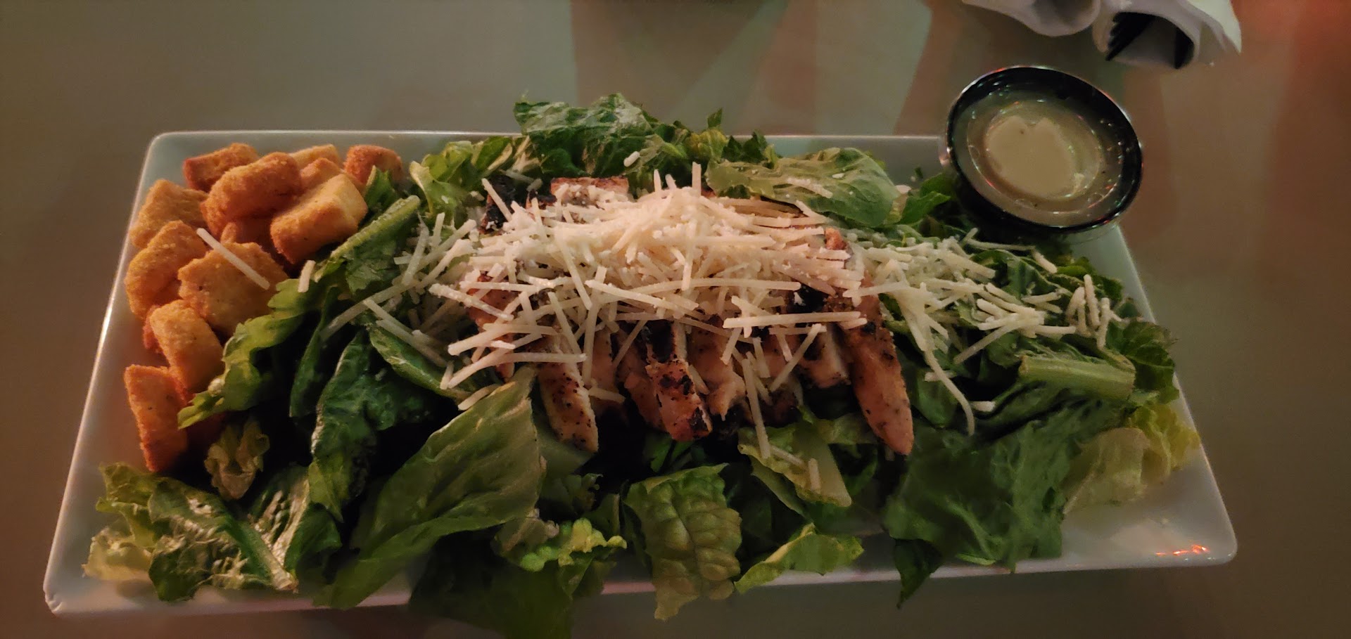 Once your food arrived, it isn't anything fresh. I ordered the Cesar Salad and got what looks like a wilted grocery store bagged salad that was thrown on a plate with a dressing that tastes worse than store brand. This was a very over priced salad as well at $13. Save yourself the time and money and find a better bar and experience! There are plenty around here within walking distance.
