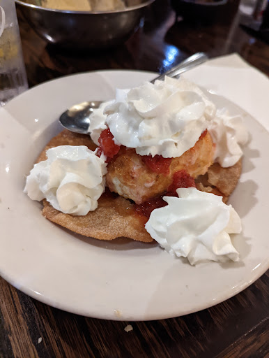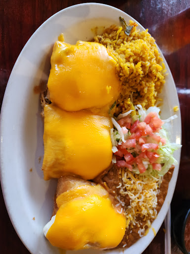 The Music being played was Cuban and Puerto Rican. The booth seating was horrible! I'm not fat at all but the leg room was very cramped that I had to sit with my legs open. Thank God I'm not a girl wearing a skirt! The Salsa was just tomato chunks. Even after requesting a hotter salsa it didn't have the blended taste of the spices as hot salsa should. The Arnold Palmer ice tea had more lemonade then tea. I guess that explains the bit of brown floating around in my drink. The green corn tamale tasted like sugar was added to give it the sweetness flavor. The rice was well cooked. However, it was way too peppery. The red chillie sauce on the enchilada had no flavor at all. The refride beans tasted like they were out of a can. Not once did our server come over to our table to check on us for anything.