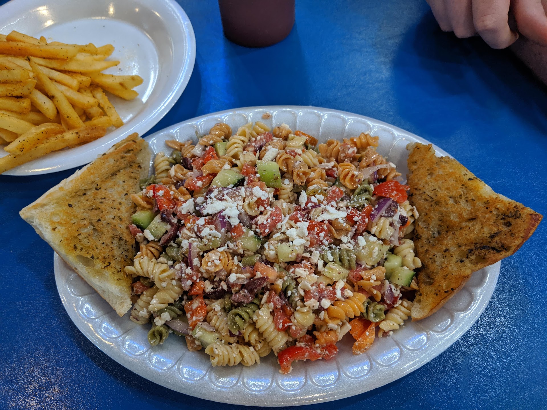 I chose fries as my side, but I wish I hadn't. I believe they were frozen store-bought fries that were under-baked and heavily seasoned with season-all. Don't be me--be healthy and get the salad (sister-in-law liked that too).