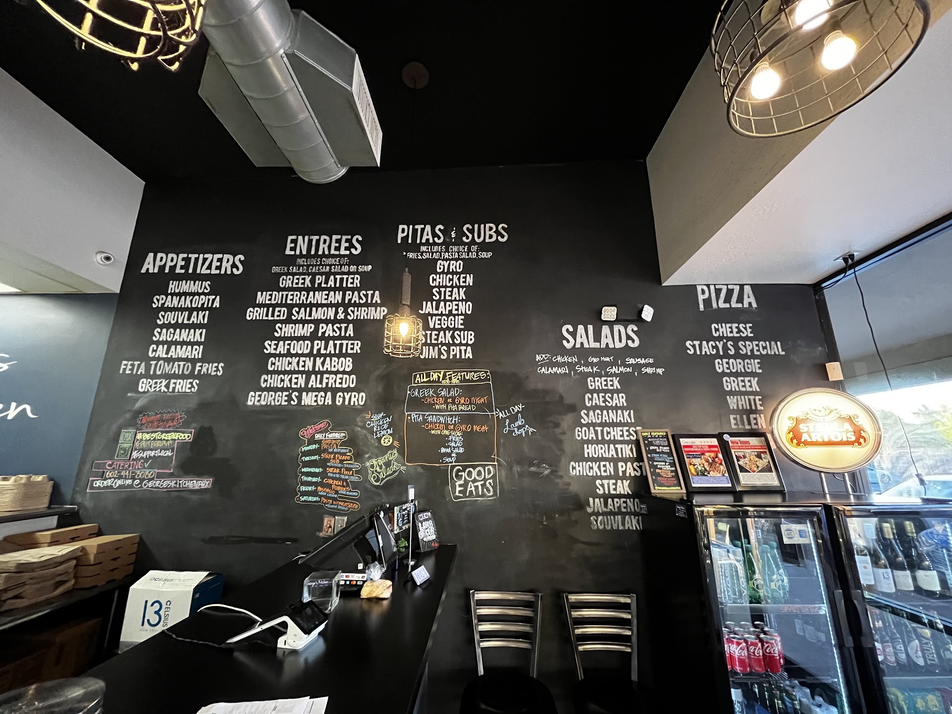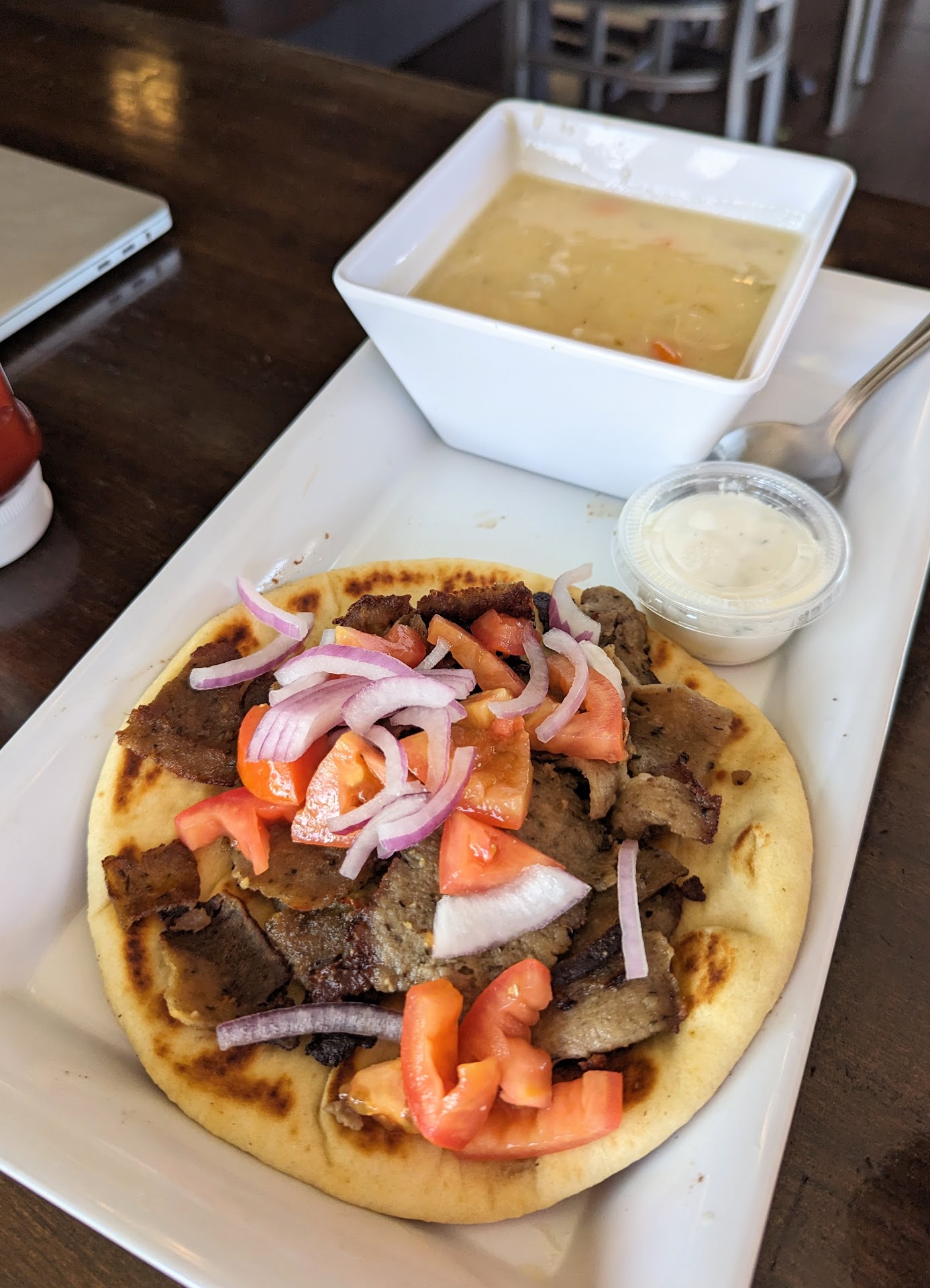 Came in after buying a couple of things from Armstrong Mccall. Started off with the greek platter with the lemon chicken soup. Flavors from the soup were light and fragrant, very nice start. Greek salad next, cheese on point, garbanzo beans poppin, fresh cucumber, and dressing delicious. At our arrival -me and two others-, the restaurant was super clean, regardless of the fact that it had been 1.5hr since lunch rush. Shows character that they clean up quickly and efficiently. Rack of lamb was a bit small for $27, but tastes fenominal, like the most tender piece of "birria" you will ever consume; it's served with a side of tasty rice, white sauce and lemon, which we stirred together and ate in parts. Took the reccomendation from our server to order the spaghetti and meat sauce and it was quite tasty but served with the tiniest piece of parmesan-dusted bread. Ultimately scrumptious, but 2-4 piece of the similar size would have made more sense in the grand scheme of things. To-go containers and water cups are available by the soda fountain and the cooks and server alternate who brings out the food. You order, pay, and tip ahead of time and then table service is provided. Gelato and coffee beverages are also sold at the restaurant. We tried the strawberry and the cookies'n'cream gelatos, both were closer to ice cream in texture but flavor was pretty light and creamy. Will be recomending this place to my friends and family for the their...