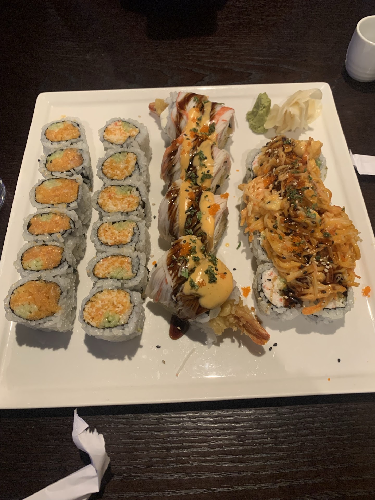 I truly am not sure HOW ON EARTH a place like this, is still in business!!! But, in my honest opinion it needs shutdown. Service, was horrible, which I can’t wrap my head around to how? When we were the ONLY ones there! We sat at the bar, with the sushi chef in front of us. And it took 50 minutes to get our sushi! We almost walked out and I wish that we did. Because not only did our waiter do a horrible job, the sushi chef took far too long to prepare 5 rolls, we ordered. He didn’t give us each one as he prepared them. He let them sitting and gave us them all at once. One roll my fiance ordered which should be hot, was cold. And the sushi chef, wasn’t welcoming at all. He never spoke once to us… It just felt uncomfortable and awkward the whole time.
