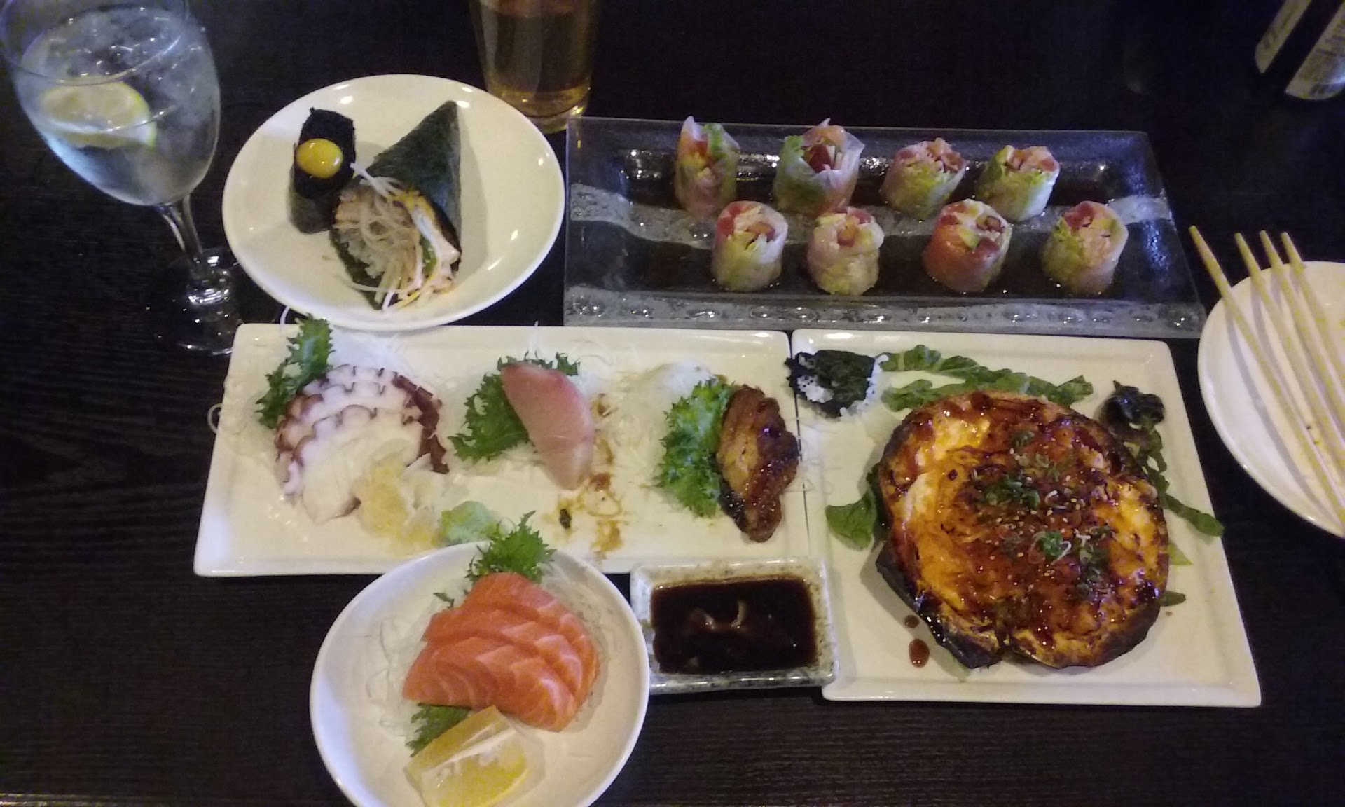 Read moreMy review is taken in reference to our normal sushi place, located across the street (kiddie corner) to Ginban. I'm used to slow service at Sushi places, but Ginban required me to get up and ask for a server - bad way to start our first experience. However, given that it was fairly empty on a Saturday night, I guess it makes sense to have a skeleton crew. They were out of Yakitori, so the server highly recommended the Negimaki. It had no flavor. Biggest waste of $8. I told the server I didn't like it, but all I got was an apology (I would've expected it to be comp'd). Miso soup was a little low on miso. Salad was a little high on dressing. Salmon sushi and sashimi were good. Rainbow roll was a light on fish (relative to our normal place). Kids liked their California rolls. We skipped our normal place because we wanted to avoid the wait on a Saturday night. The reviews were so good that my expectations were pretty high and I really did want to have another go-to sushi place. But overall prices were higher than our normal place and quality was worse - based on our experience I can't see me or my family...