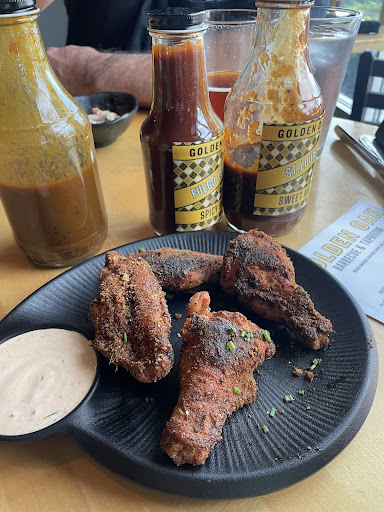 Why you should eat here: The BBQ meats, sauces, sides, and dessert were excellent!! Service was "top-shelf!" Beers were very good. Price for the quality of the food and experience was worth every nickel!! Upon entering the staff greets you with a smile and a welcome in. Plenty of seating, very well arranged, with tables for 2,4, and groups of more. Plus large comfy couches. Plenty of bar seating as well. I ordered an Oktoberfest beer from Oro Brewery (in Mesa), which was good. Later I had a Saison from Oro as well, which was tastier than the Oktoberfest. Food: with a recommendation from Alicia (bartender), I picked 2 meats; Brisket and Pork Belly (smoked around 14 hours to perfection), came with choice of 2 sides; I chose Mac n' Cheese and Beans. (See pics). Sauce; my favorite was the Tangy, which bursts with flavor in your mouth!! I also met another employee Grant, with whom I engaged in conversation about the establishment, the food, the brews; etc, very knowledgeable and nice guy! After I devoured the BBQ plate, Alicia and Sara convinced me to try the dessert (only 1 dessert on menu, but well worth it), which was unique and very good, if you like corn, Carmel, ice cream, edible corn flowers.,,,, as I said "unique". Alicia and Sara also told me they have a cocktail that is very tasty and garnished with "Black Ants"!!! I tried them on a lime, good, different but good. Order the cocktail, I think you'll like it. The place was clean, smells of smoked BBQ, clean bathroom, nicely laid out restaurant. Overall my experience was awesome!! I highly recommend giving Golden Oak a try!! I want to thank Alicia, Sara and Grant for their kind hospitality...