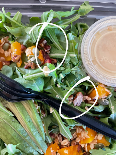 I brought the food to the work event and when I went to take a bite of my salad I realized that there were tons of pecans on top. It's a good thing I didn't eat any of it - my allergies are life-threatening and I could have easily died. It was incredibly frustrating to be the one to place the food order on behalf of 10 people, pick it up and deliver it to the event only to be left without lunch.