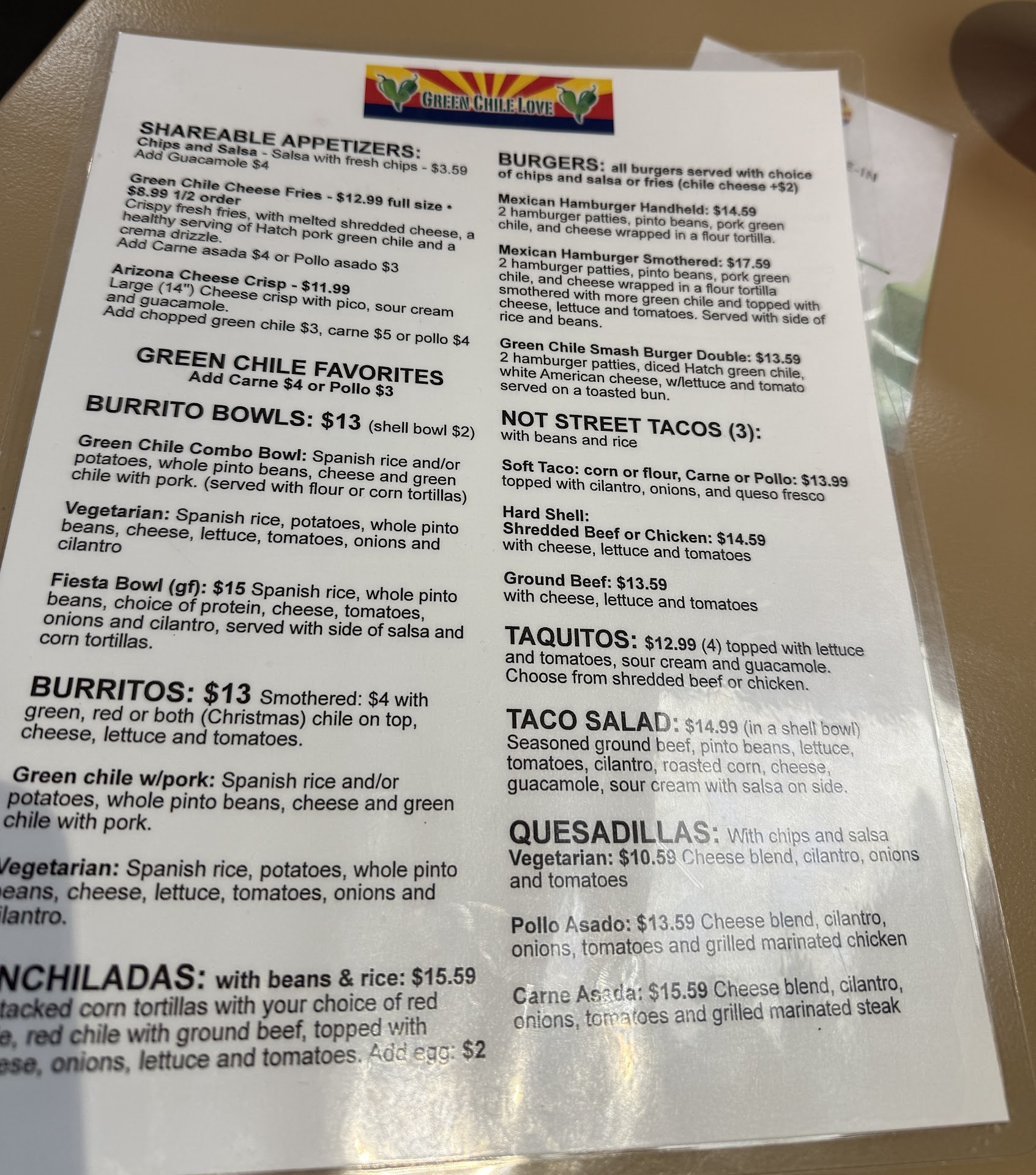 The highlight of the meal? When I mentioned to the owner that the chili wasn’t quite as spicy as I expected, he came back with a sample of “Dave’s Spiciest Green Chili”—and let me tell you, it did not disappoint. It packed the heat and flavor I’ve been chasing since leaving the Southwest.