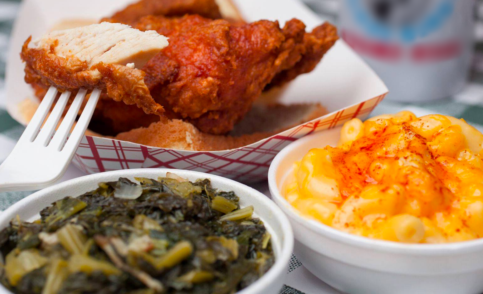 Now for the food and its service. I ordered a beer, both light and dark meat, with collard greens, and mac & cheese, which is pretty typical fare for Southern food. My wife ordered wing, breast, potato salad and coleslaw. The beer came nice and cold. I asked for a glass and the server told me they don’t have any. Really? The food came in a timely manner, even though the restaurant was fairly full and they were processing takeout orders as well. The mac and cheese was just pasta with melted what appeared as melted American cheese poured over it, lacking any unique flavor. The collard green were just OK. They could have used a bit of vinegar, salt and seasoning. I enjoyed the flavor of their spicy batter, and they cooked both my chicken breast and thigh perfectly. This was why we came. They served the food on paper containers and the flatware is cheap plastic ware that comes in cellophane wrap. Everything is disposable, which is not environmentally conscious. When you spend $20 per head, real plates and stainless flatware would enhance the experience, and considering their industry, they should be able to afford it since their food cost is likely much less than the industry standard of 33%.