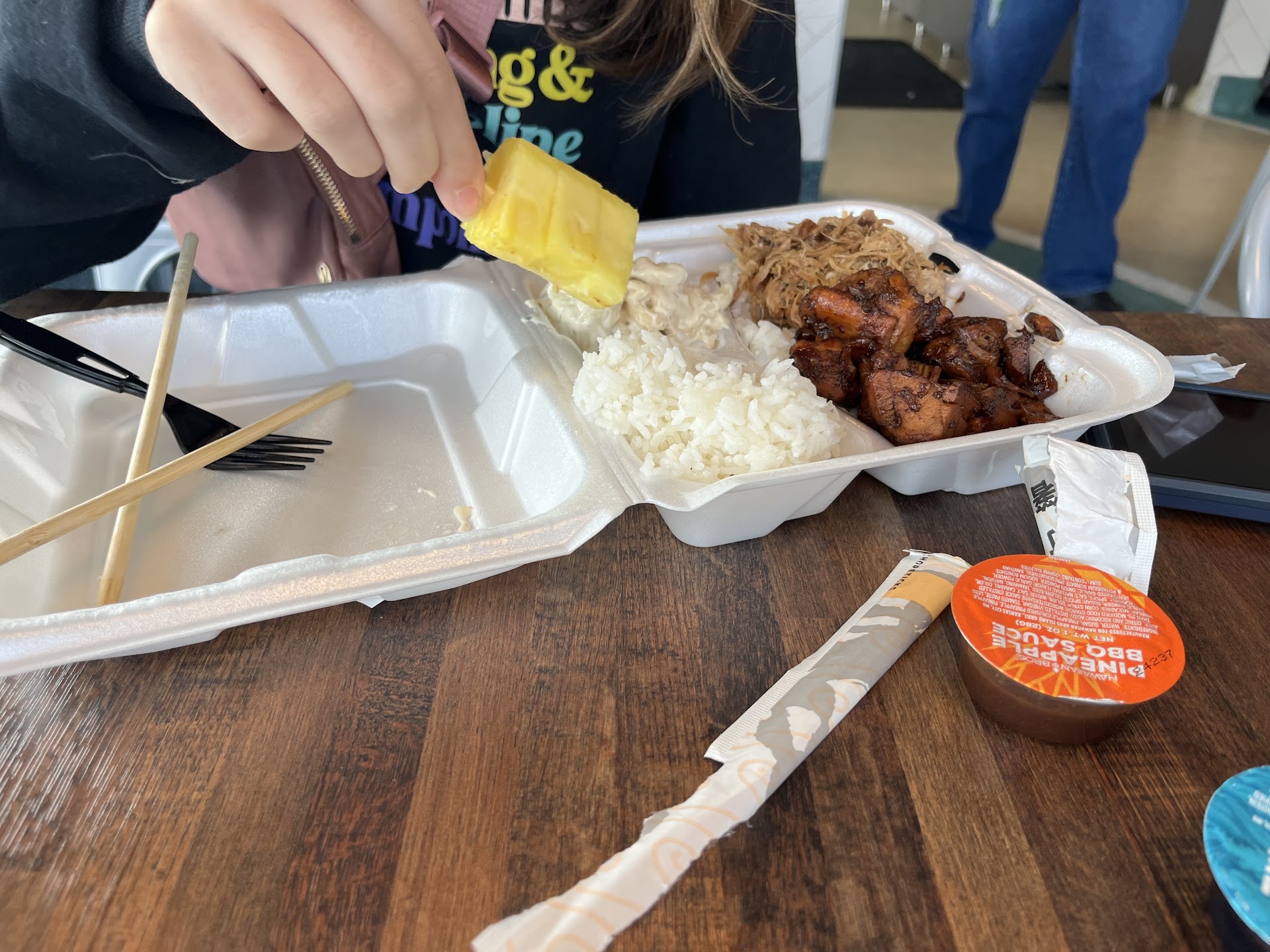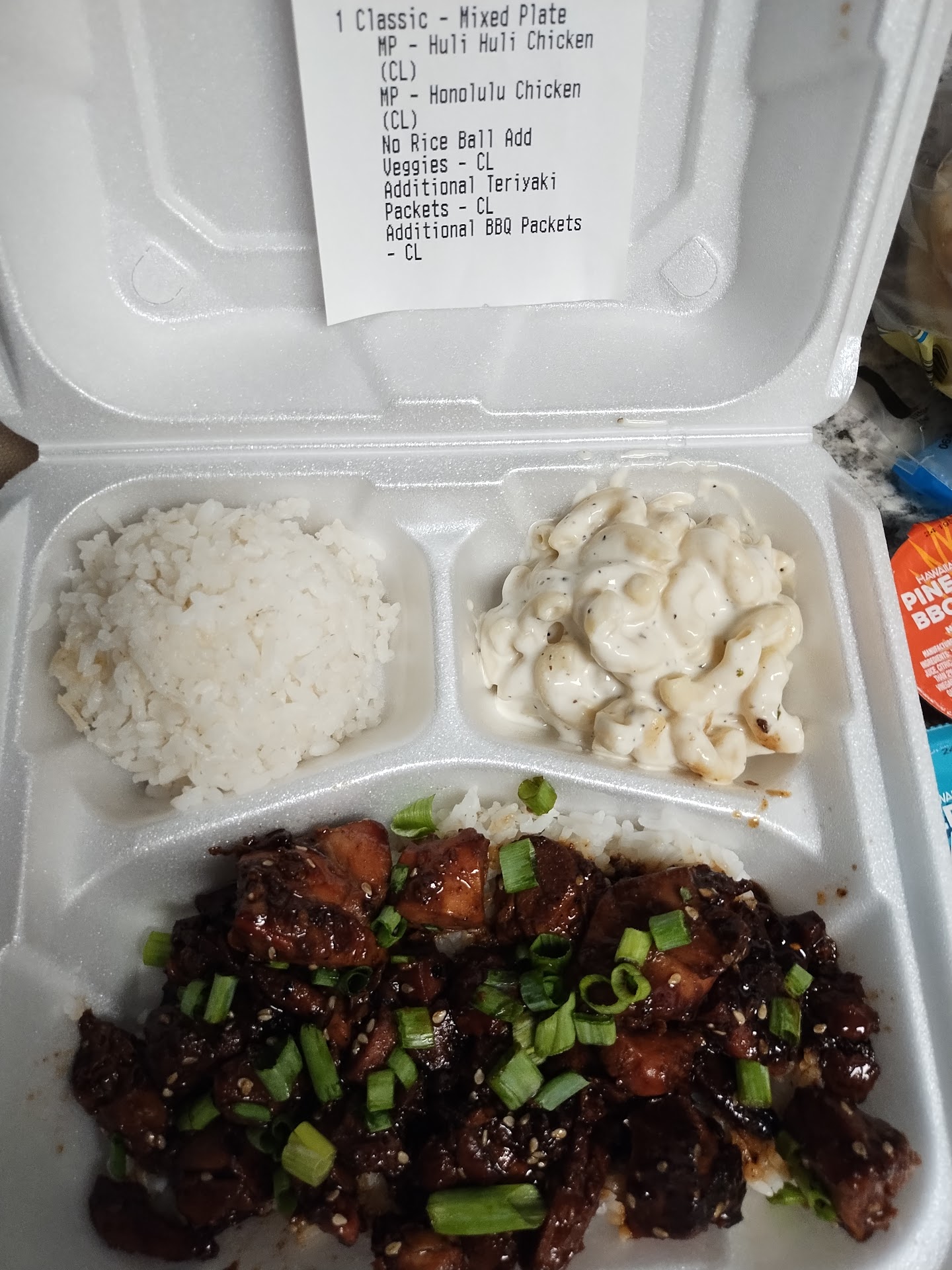 Read moreHad been hoping to check this place out for a while. Once we finally had the chance, we (wife and I) went simple and just got ourselves Dole soft serve in (March of 2025), which is incredible, being such a basic but delicious dessert. We made further purchases of just the Dole whip, but each time we picked it up, we became more and more intrigued from the wonderful smells coming out of the kitchen when we picked up our orders. We finally decided to order some food on May 31st, 2025. It was very simple ordering online for curbside pickup. I ordered a mixed plate with Mookai chicken and Luau pig, which comes with rice and macaroni salad. I also ordered a side of veggies, a dole soft serve for both my wife and I, and my wife ordered the Honolulu chicken with no macaroni salad and instead subbed a pineapple skewer. We each loved the meats--they were all so tender and easy to eat (no need for a knife), and it was all seasoned perfectly. She really liked the pineapple to compliment her chicken. She thought there was too much rice, but I thought it was a good amount and I had just enough to each with each bite of the meats I ordered. I did find the veggies under-seasoned, and probably won't order them again. Also, I wasn't impressed with the macaroni salad--it was bland to me, and was the only part of my plate that I didn't finish. Also, when I pulled up in front of the building, I pulled out my phone to contact them I had arrived, and there was an employee at my car door before I could even open the application up--very helpful...