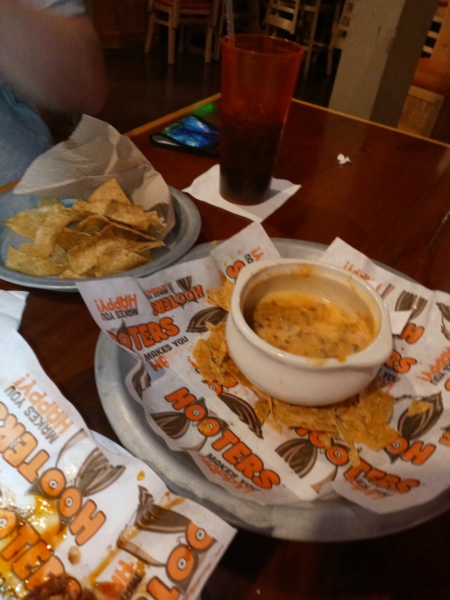 Read moreMy husband and I took our two kids here.. we were going to go to our usual place (Red Robin) but our 9 year old wanted to try Hooters for the first time. When we got there is was pretty empty a few people in the bar and two other families in the dining room.. my 3 year old asked to use the restroom, on the way back he saw all the games, I said no and my 3 year old lost it.. not even 3 minutes into his tantrum ( as we are already embarrassed) the manager comes up to me and says heâs going to give me a few minutes to calm him down and take him tot he bathroom and do what I need to do or he will need to ask us to leave⌠My husband came back from going to the truck to get our sons calming toy⌠and we immediately left right after⌠We drove straight across the street to Res Robin and we got seated quickly, my son was still crying.. our waitress immediately came with a soft voice and tried talking to our 3 year old and if we needed anything, she brought him a drink, some oranges, and within seconds our 3 year old was happy and calm and saying thank you and being the toddler he normally isâŚ