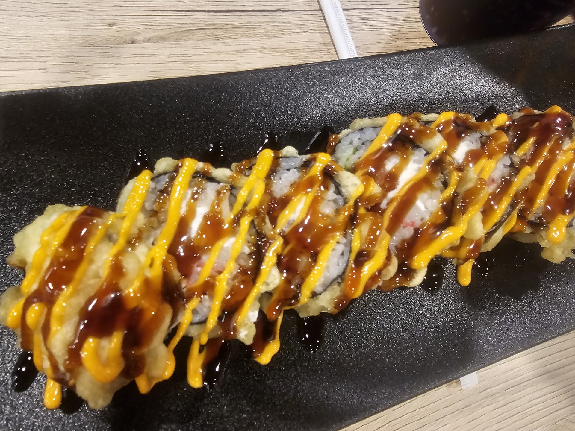 Our favorite roll was by far the seared salmon roll, but honestly there wasn't a single roll we could complain about. The jalapeño poppers were very tasty. I'm not usually a fan but these were very good! Their tempura batter was very crispy. I ordered a salmon handroll and was pleasantly surprised when they brought out 2!