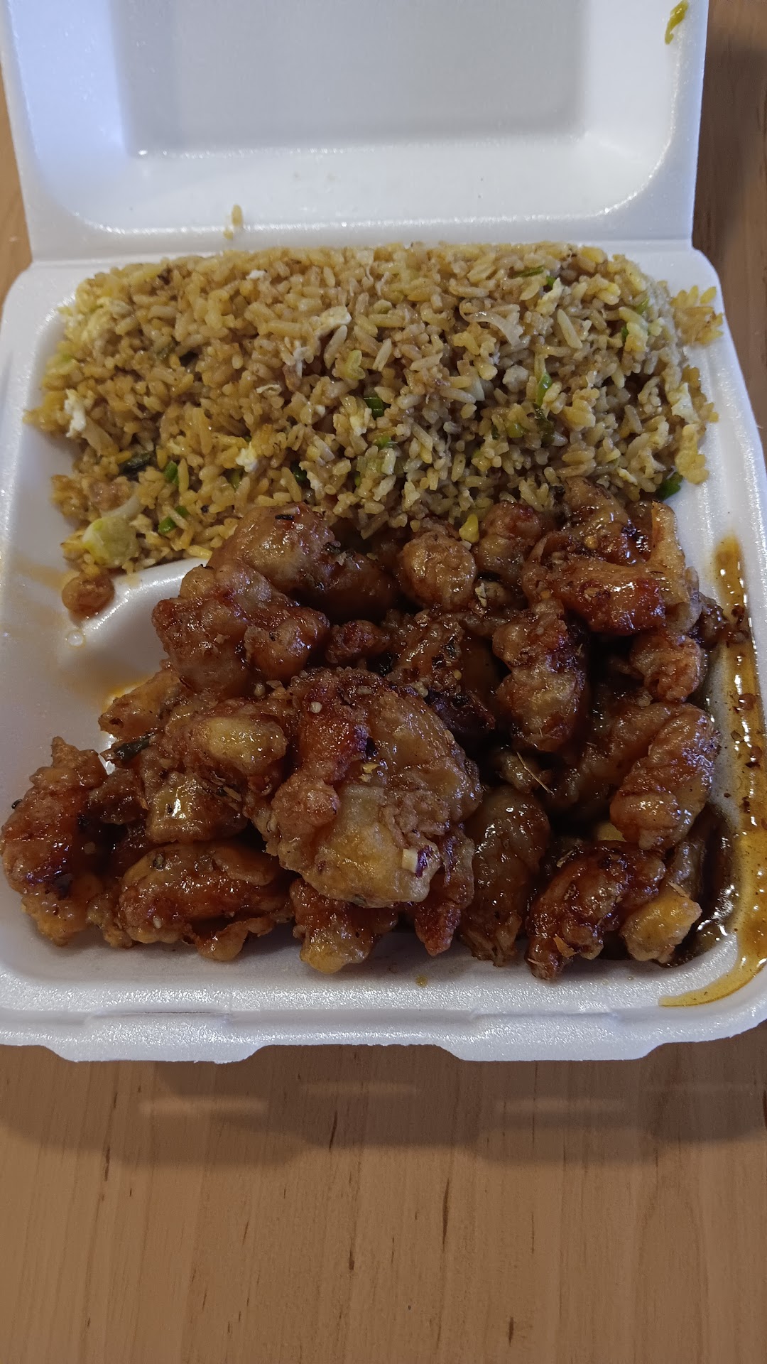 The fried rice was fire. It has this clean charr flavor from its cook, mixed with green onions, and has this intoxicating garlic scent that you do not need sauce with it. The orange chicken was crunchy, and not too saucy. It's drier than Dragon Garden's orange chicken, and less oily than Panda's. Just overall better. Flavor profile is predominantly garlic and something else I can't put my finger on. It's freaking delicious.