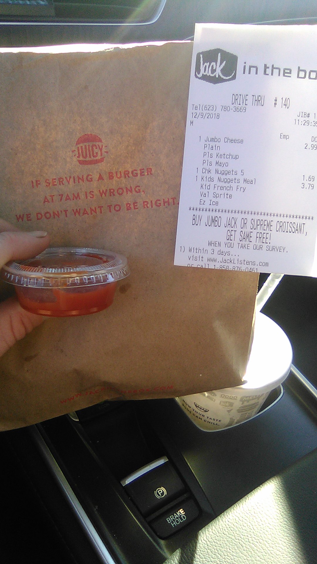 I watched the line cook ask the manager about birria tacos, manager tells him to sub regular tiny tacos, they call my order and hand it over as though it's correct. when I ask about Birria sauce, the manager THEN tells me they're out of it. I mention that it's not *86 on the POS and a simple heads up would've been nice. Whatever. Then I get home and open the jumbo jack to find they just made a regular jumbo jack WITH PICKLE. Like it's 1 thing to be out of an item, it's another thing not to say anything, it's a thing to forget custom add on, but when you can't even hold the pickle for the burger you're allowing me to pay extra for, you hustled me 100%.