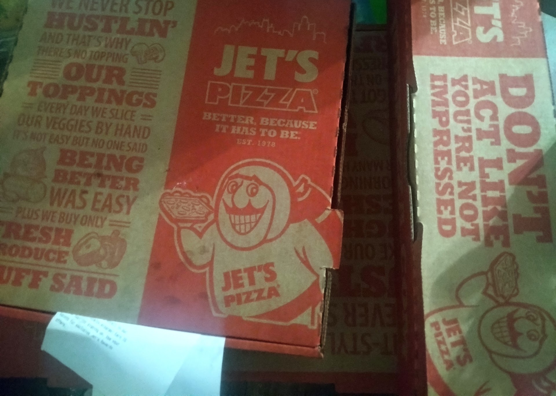 Read moreWell, I just want to tell you...I was the very first customer ever when they opened their doors 2 weeks ago,(Okay, I don't have a life but, it was important to me!) and was greeted very nicely by the General Manager Benjamin! The pizza was just the way I remember it back in Michigan! I came back again last week and Benjamin remembered me and introduced me to the stores owner Matt, who is a very nice guy as well, and I told him I think he's going to do very well at this location! There are a lot of people from Michigan here and it's nice to find a GREAT Detroit style pizza! Also when I was there another employee from Michigan was helping them get things started and, he was very enthusiastic and friendly as well! Here is wishing everyone at Jet's Pizza Tatum & Shea all the best! JET'S! JET'S!...