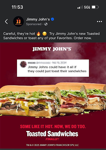 Read moreI spent $30 on a single combo meal and one additional sandwich, which is astronomical on its own. I asked for no tomatoes, but they were still included. I ordered a combo, but there were no chips. I chose the bacon chicken ranch, yet there was no bacon on the sandwich. I even asked for both sandwiches to be cut, and that was ignored as well. On top of all that, I waited in the drive-thru for 15 minutes—with no cars ahead of me. Jimmy John’s used to be known for being quick and accurate, but unfortunately, this visit was neither. Definitely not "freaky fast" anymore. Jersey Mikes is WAY better; bigger sandwiches, accurate orders, better customer service all for...