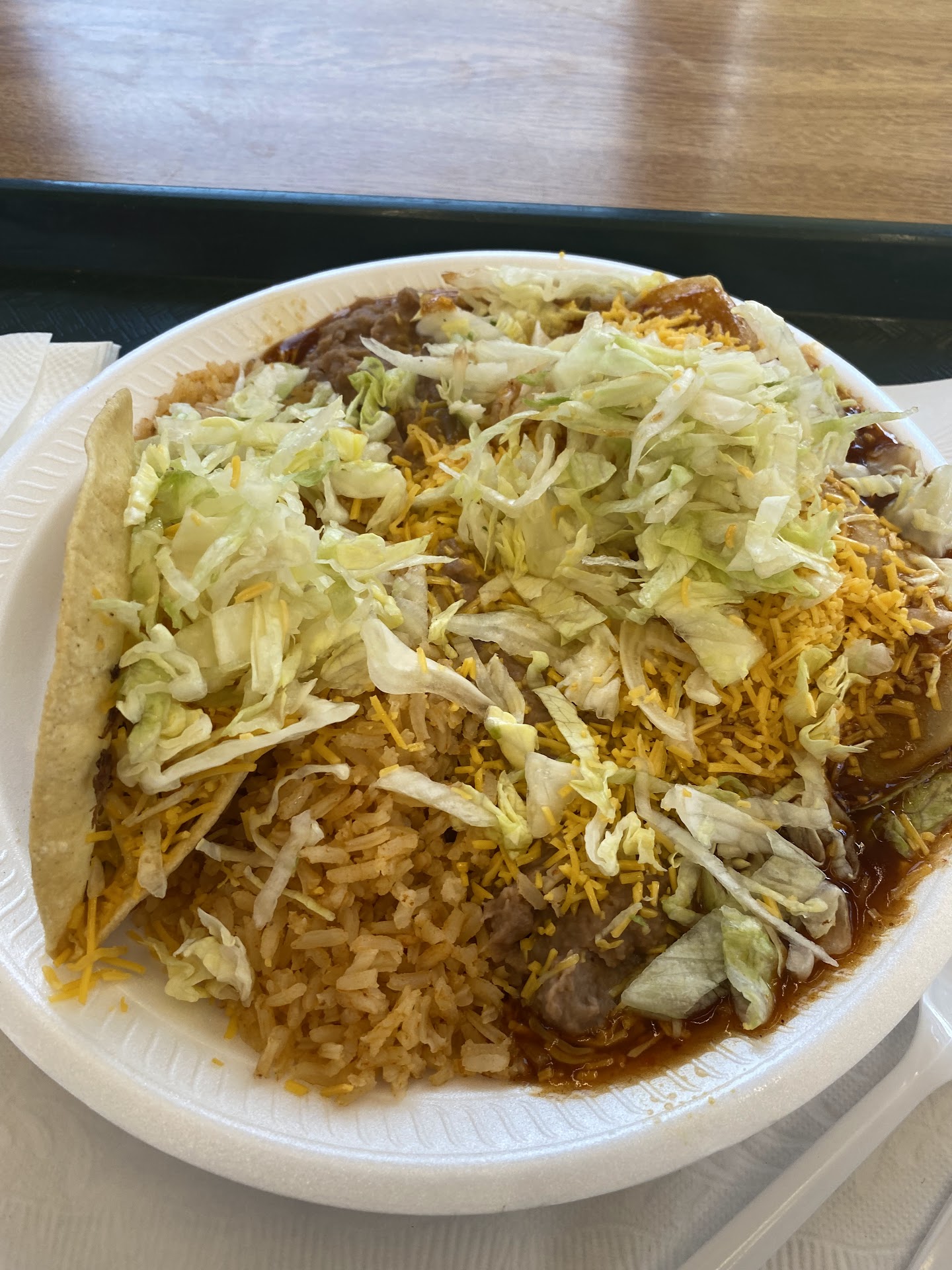 I ordered some combo - a couple enchiladas w/ rice and beans. I was starving and I'm not a Mexican food connoisseur by any stretch, so mere competency should have been more than enough to satisfy me.