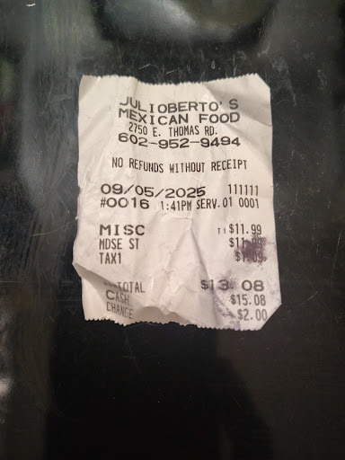 My husband and I both grew up where 'Mexican' food was most often actually Tex-Mex, but we have both had authentic Mexican food (our daughter-in-law is Mexican), so read this review with those factors in mind. Husband got chili rellenos - one of his favorite Mexican dishes, so he has eaten lots of them at lots of places. He said these were pretty bad. My cheese quesadilla wasn't terrific either - and it's not that hard to make a good quesadilla (Carl's Jr makes a better one, for $2 less!). I will say that the lady behind the counter was very nice, but that alone is not enough to prompt me to go back. If you just have to have Mexican, I'd recommend Maria's Frybread just a little over a mile east on the south side of Thomas Road the food is better, the service is excellent and you'll get more...