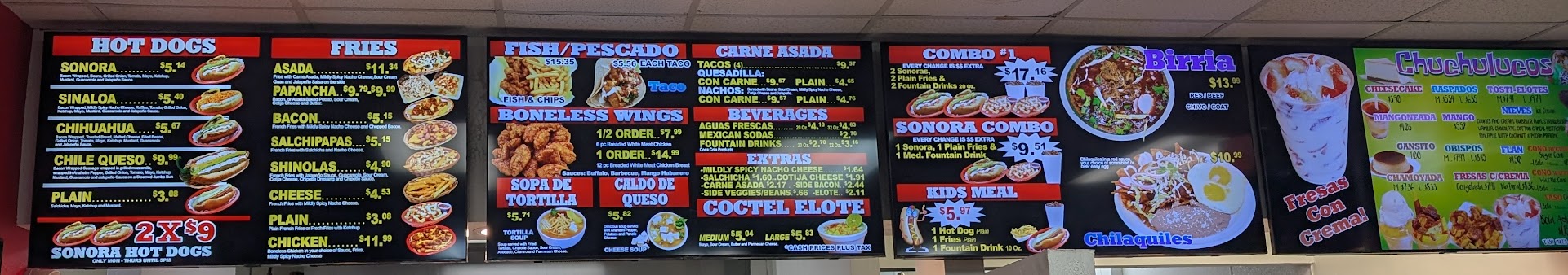 Read moreOk place to "eat" more like antojitos.I ordered The sonoran hotdog has hot dog wrapped in bacon mayo mustard guacamole tomato ketchup beans, also coctel de elote it has butter mayo cheese lime juice and chili powder served in a cup we also had carne asada tacos,chihuahua hotdog and frys. My hotdog didn't taste like it had bacon I saw it in there but didn't taste like it the dog it self was a regular size not a jumbo the frys were crispy but no salt, the elote had way too much butter and lots of water ,the butter flavor was all I could taste I didn't like it at all. And we also ordered fresas con crema for dessert they were too sweet for me but overall they taste ok I didn't care for the sprinkles on it cause it made me feel I was eating cake. The place looked clean the bathroom was clean the service was nice but I dont think I'll be...