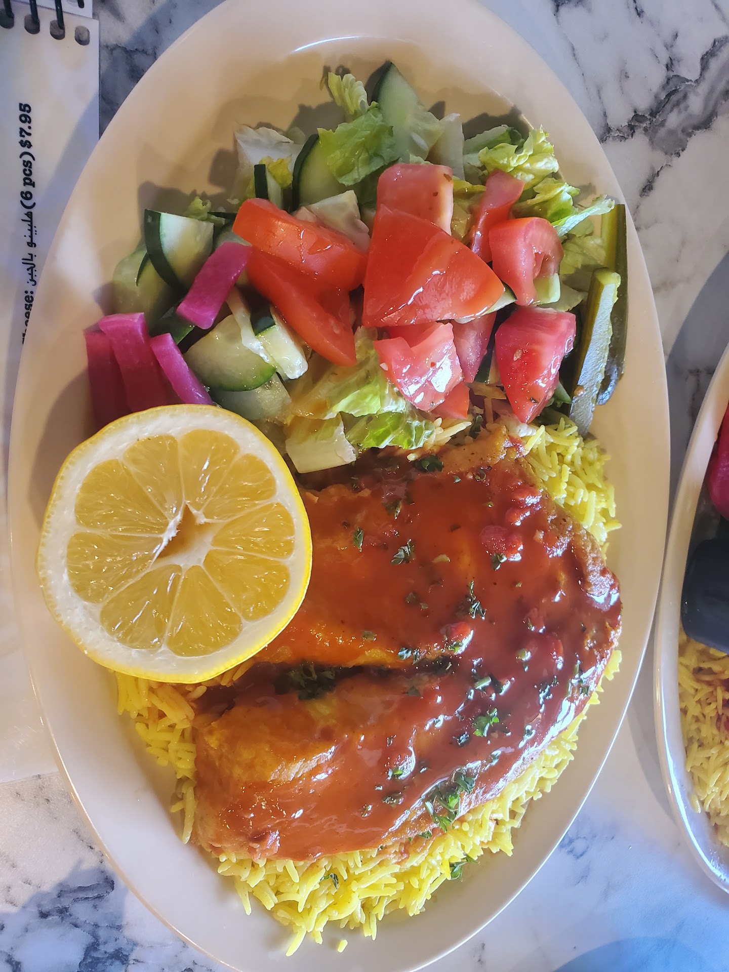 That said, I have to be honest about my dining experience. The food didn’t hit the mark for me. The fish had that overly "fishy" smell, which usually means it wasn’t cleaned or prepped properly. The rice tasted like it came from a box, the garlic sauce didn’t have any real garlic flavor, and the salad had no dressing at all. It felt like the ingredients weren’t given the love they needed.