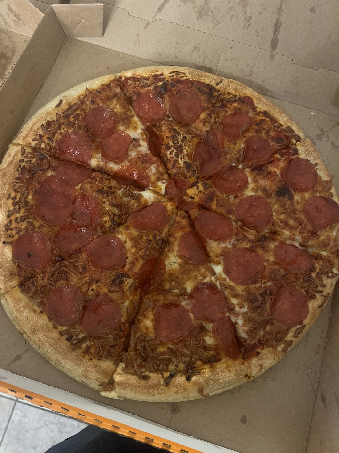 Read moreI ordered a large thin crust pepperoni pizza last night online at 8pm it said it would be ready by 8:21pm the pizza was fine at 8:32pm .. but it was raw nit cooked though at all.. I tried calling but I got no answer so I went back and of course they were still busy others were complaining about their order being messed up as well so of course I didn’t get my pizza replaced so I called back in the morning hoping to get better service but I got hung up on twice then I went back they re made the pizza but it wasn’t what I ordered it had sausage on it witch I am highly allergic they were obviously upset so of course I didn’t get the pizza replaced and that didn’t make sense because they weren’t even busy at the time.. I also witnessed the employees making pizzas answering phones taking orders at the front all without wearing gloves or washing their hands.. the guy even wiped the sweat from his forehead and flipped his fingers through his hair then started spreading sausage on a pizza that I came to notice was the one made for me.. but again I didn’t order sausage because...