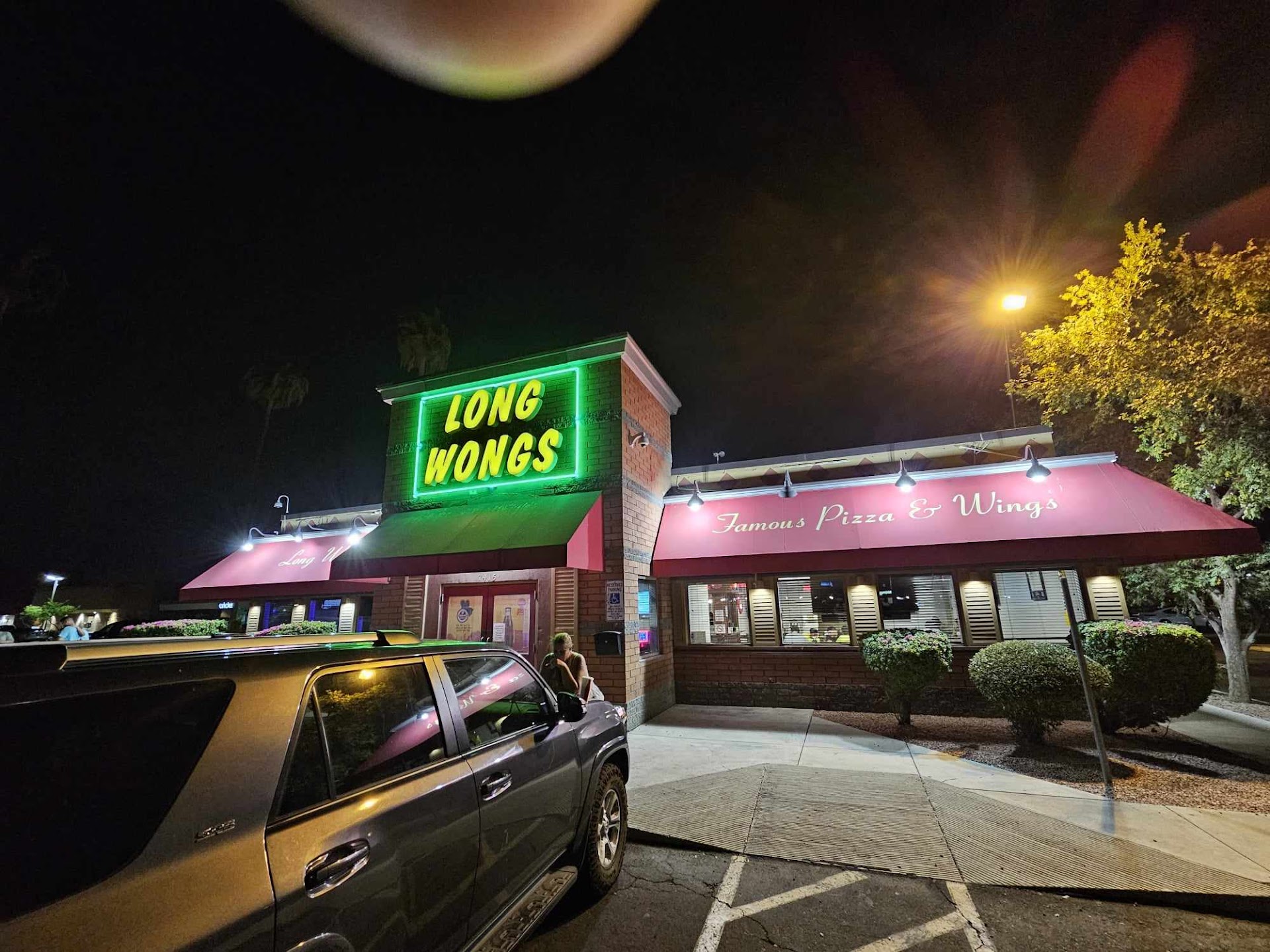 Read moreDON’T GO HERE, this long wongs used to be good but the quality went way down. The pizza tasted super low quality with a flavorless bread. You’re better off getting a cheap frozen pizza from walmart. Got the 20 piece wings (hardly any meat on them) half honey hot half garlic parmesan. the honey hots were decent, they used to be better though. The garlic parmesan were straight a$$. Server did warn me that a lot of people don’t like those because of the sauce they use but wanted to get something that wasn’t spicy for my son so i took a chance, should have listened. If a lot of people complain that much about a product maybe you guys should remove it or try to make it better, but nope probably want to stick with the cheapest option. Got a 12in pizza and 20 piece wing with no appetizers and 3 fountain drinks (coke tasted like it had little to no syrup) all for around $65 dollars and it was not worth it. Felt like i got robbed honestly. Still gave the server a good tip cause she was the only thing that was good about that place and it wasn’t her fault the food and drinks sucked. AZ famous wings my A$$