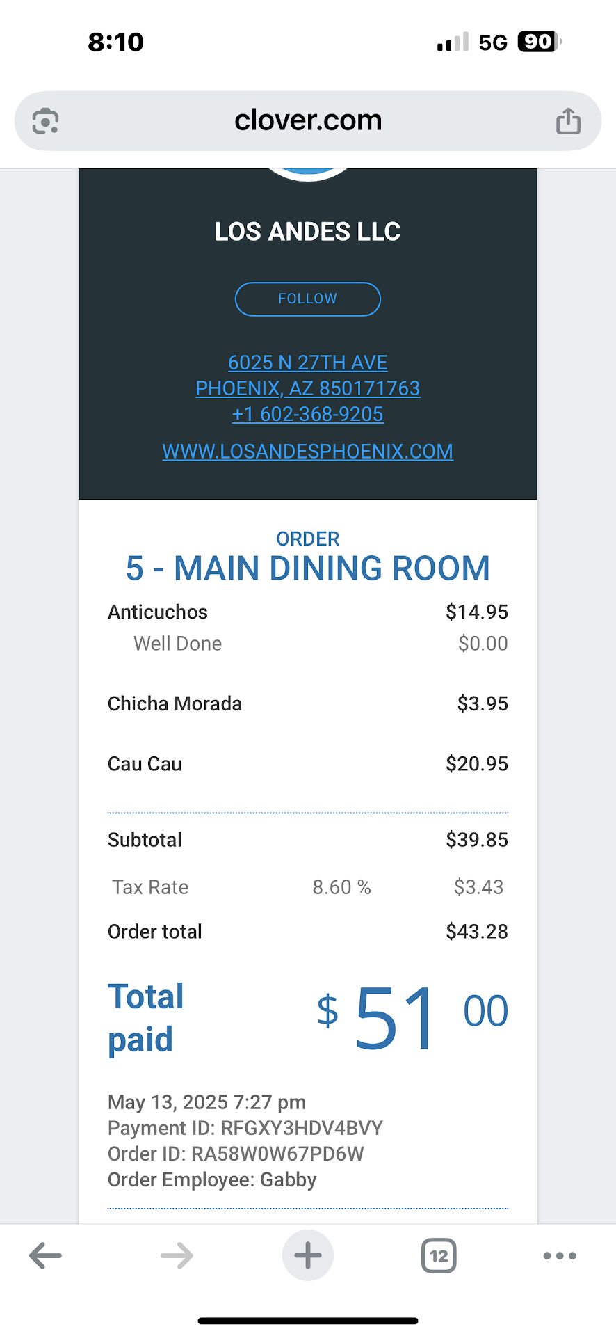 Read moreI am a First Generation Peruvian-American and grew up with amazing Peruvian dishes prepared by my mom and my Aunt. Growing up in NYC, I was able to expand my culinary experiences in Peruvian fare as more and more restaurants turned up over the years. I even had the pleasure to dine in Lima and Cuzco Peru. My mom and I moved to Arizona and have been trying to find ingredients for our favorite dishes and finding Los Andes has been a Godsend! Every item on the menu you is cooked fresh, the moment you order and the proportions are generous. Ceviche is my favorite but their Chaufa, Papa Rellena and Cau Cau is perfection! On my next trip, I plan on taking home Tamales but will have some Anticuchos (beef kebab) while I wait. Have a pitcher of Chicha Morada to cool off and let yourself be transported to Peru! You won’t...