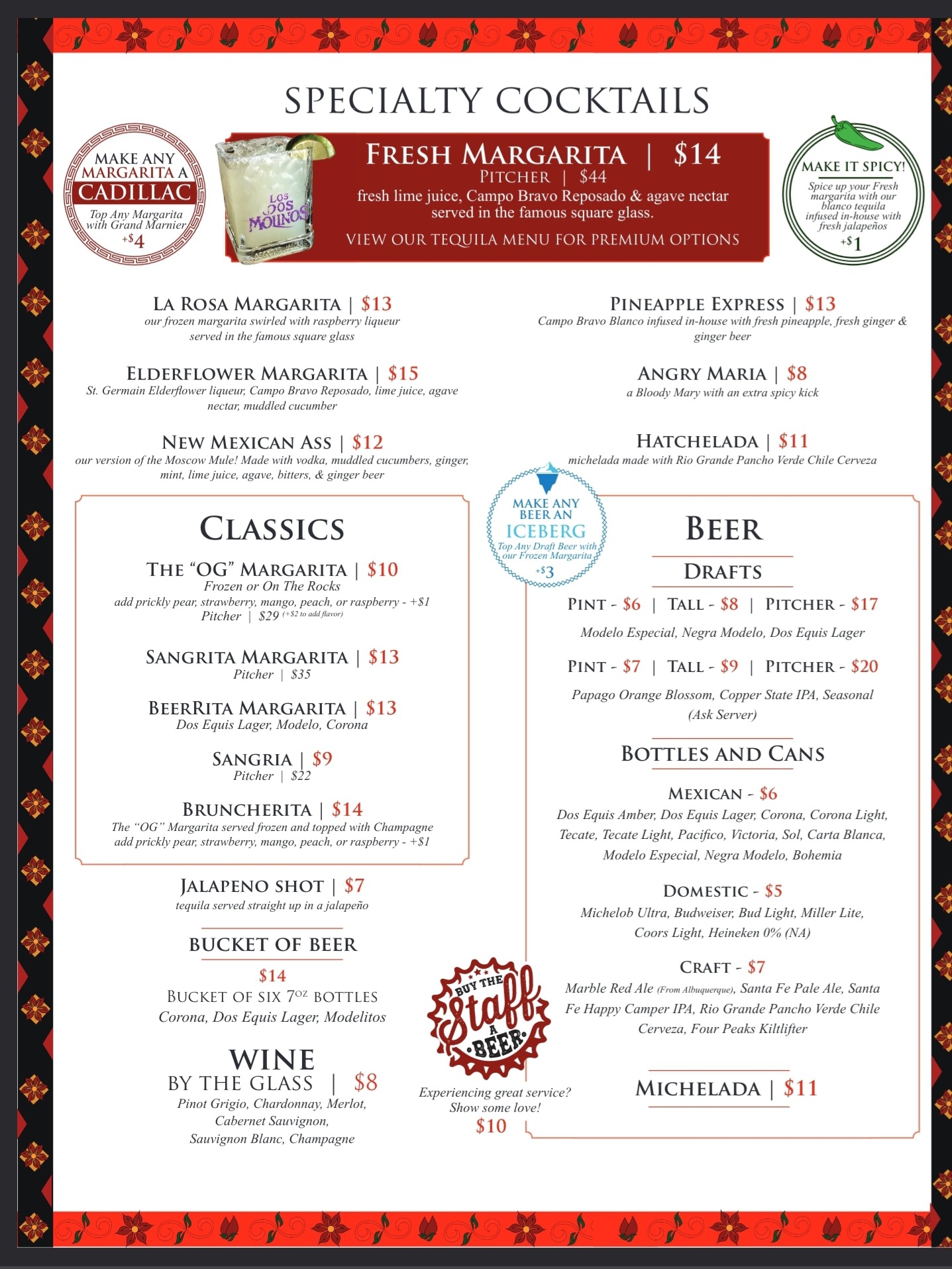 Read moreLos Dos Molinos is an institution and throwing rocks at something we all know and love for “go to” New Mexican food is not something I take lightly. I’ve been to most of the locations including the now-closed store in NYC. The location I like going to is Los Dos Molinos Uptown on Camelback. The food has always been amazing but if you don’t like spicy salsa then this is definitely not the place for you. I absolutely love the carnitas plate with a fried egg on top. Wow! But in the last 4 times I’ve been there with a party size of 3 or 4, and over the span of the last 2 years, the table service has almost become non-existent. So, I’m going to finish this review on just the service at this location only. The standard customer arrival process: (1) Upon arrival, you will typically be seated by one of the servers. (2) The server that seats you, in many cases, is your actual server. (3) You will always be asked what you would like to drink. I think this can be improved in the table assignment “who-does-what” as it creates confusion later. And you will need a good stiff drink if you are one of the unfortunate souls on a “table island” with no service. Once the kitchen gets the food order, the kitchen staff and runners do an excellent job with delivery. But that order NEEDS to take place. While we waited, another table got seated (points 1, 2, and 3 executed) and within 5 minutes the server (same as ours) took their order and received their food. I tried to get ANY server’s attention and it is as if our table didn’t exist. I finally went to the one person not really doing anything figuring he was in-charge. After saying how long it had been he proceeded to tell me that they had received 30 food orders in 10 minutes. So, am I to assume you are telling me to go pound sand? Anyway, he became our server. It was now easy to see our table now that the table that came AFTER us had finished up and left. Things worked at lighting speed once I complained. Even offering us 3 complimentary shots of tequila. My advice would be to get any food here to go or eat at the bar only with a dedicated bartender. The restaurant is in a great location, has a cool vibe with the décor, and the food is great. But their service staff needs to learn some basic things on service because, as far as I can tell, it doesn’t exist and you’ll be stuck on a castaway table (movie reference) looking for something more than a coconut falling from the only tree on the island (did I mention the first bowl of chips and salsa are free?...