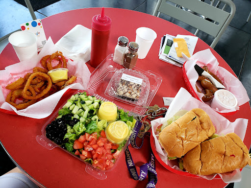 If you use google maps it may zig zag you around the parking lot. You don't need to do that. You can come somewhat straight back. I thought the chairs would be uncomfortable when I saw them, but they were pretty good. Good variety in food, but mostly sandwiches, wraps, salads and soup. Standard lunch stuff. Didn't really look at breakfast. The chili cheese fries were good with enough chili to get on all if the fries, not just to cover the top 6 or 7 like...