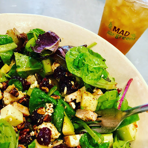My mom, husband and I had lunch at MAD Greens on a weekday and were very pleased! The ambiance of the restaurant is casual, fun and comfortable. The employees are friendly and knowledgeable about the menu and have great recommendations. I had the Bonnie Parker salad and I’m not sure I will ever stray from it! The mix of fruit and nuts in the greens was perfection. The pecans (I think) are coated in MAD Spice seasoning mix—so tasty I’ll probably pick up a bottle next time I’m in. 😁 My husband ordered the Ty Cobb with Chipotle Caesar dressing instead of bleu cheese and said it had just the right spicy kick in the bites. Loved the mint iced tea, too. They have quite the eclectic choice of sodas, but once I saw the tea choices, sodas were out the door. 😂 We will definitely go back. Oh, I somehow didn’t get the memo that the large salad is REALLY large! I think I could split it next time. Truth be told, my salad was soooo tasty, I finished The. Whole. Thing. By. Myself. I don’t even feel guilty. 😆