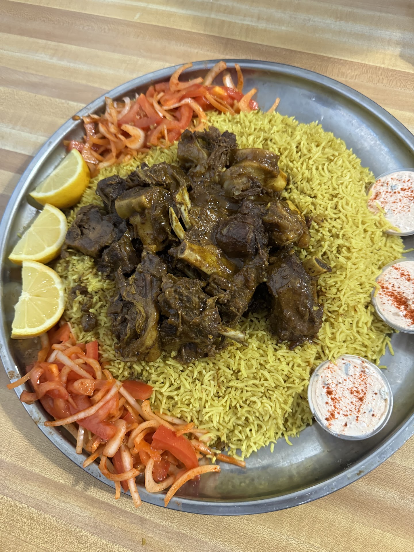 Everyone working here is always filled with kind smiles and welcoming vibes. I love stopping by with my family for savory meals, snacks and deserts. My ABSOLUTE FAVORITES are the rice and tender goat meat, sambusa, chicken tikka and shawarma wraps. There are so many scrumptious options to choose from.