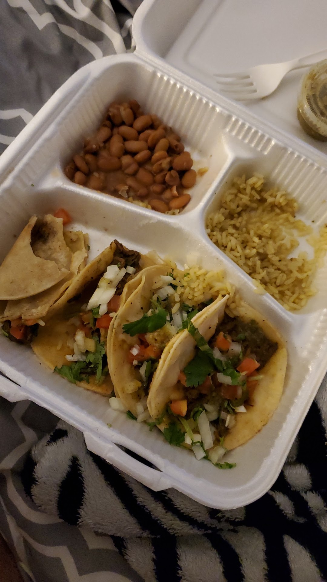 I work nearby and walked over to pick up, disappointed in the tacos, they are not traditional rolled tacos, which is fine, but should update menu. What you get is potato filled tacos with the meat and garnish you choose, what I got was a soggy mess.