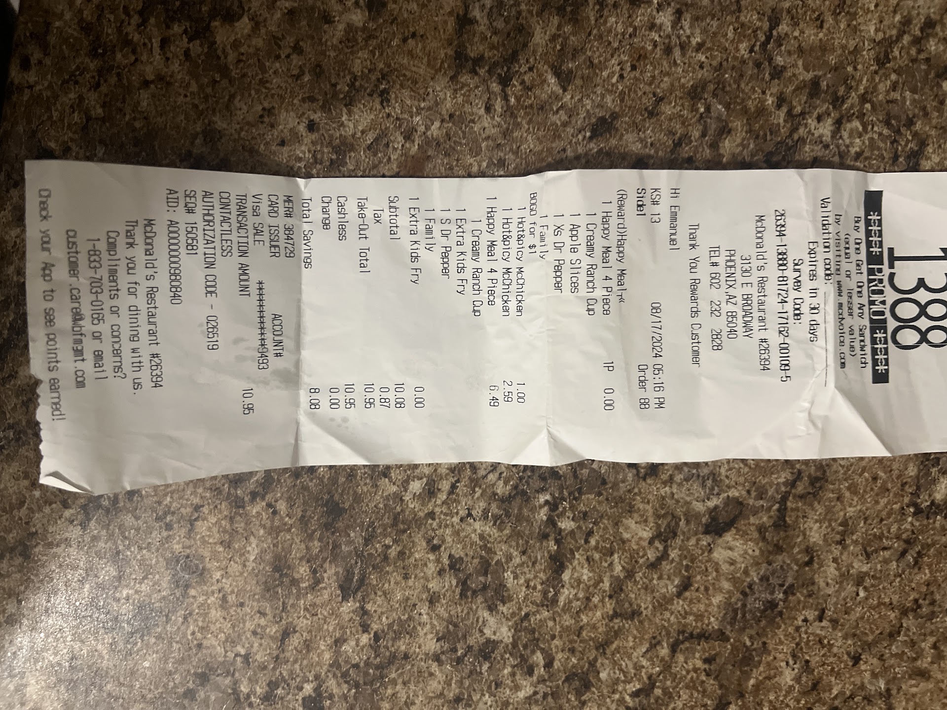 Worst customer service ever do not come to this McDonald’s my family and I went thru the drive thru and it was the wrong order someone else food. When I noticed the drinks were wrong I told them they had a bad attitude but exchanged them. We were on the road as soon as we looked at the food it was not what we ordered so we called the store number on the receipt no answer kept getting recorded message to enter a PIN number no voice mail was set up called multiple times same thing so we called the corporate 800 number I. The receipt left a voice message this was around 5:45 pm. I was already on the freeway far from the location. I called back again at 8:07pm same night they finally answered the gal that took our order knew we where given the wrong order and said to come by tonight that the manager was there again I’m on the road we had dropped our kids of at a relatives. We drove back at 9:45pm spoke to a night manager said she did not know if it she called the other manager said she had told us to bring back the original food which was a straight up lie she never told us that this was 4 hours later I’m not going to keep food in my truck for 4 hours my kids had no choice but to eat the wrong order not what we ordered since we where dropping them off. This location needs more training on customer service and at being more accurate with simple orders it was not a big order simple two happy meals and two hot and spicys. I even let them manager know I tried calling when we noticed it and no one answered I even showed her my call log where I called. Corporate received a voice mail at the time. This is just frustrating I’m not trying to be rude but do your job right and you wouldn’t have these types of issues. First and last time going to this location. I was not even asking for a refund just for my...