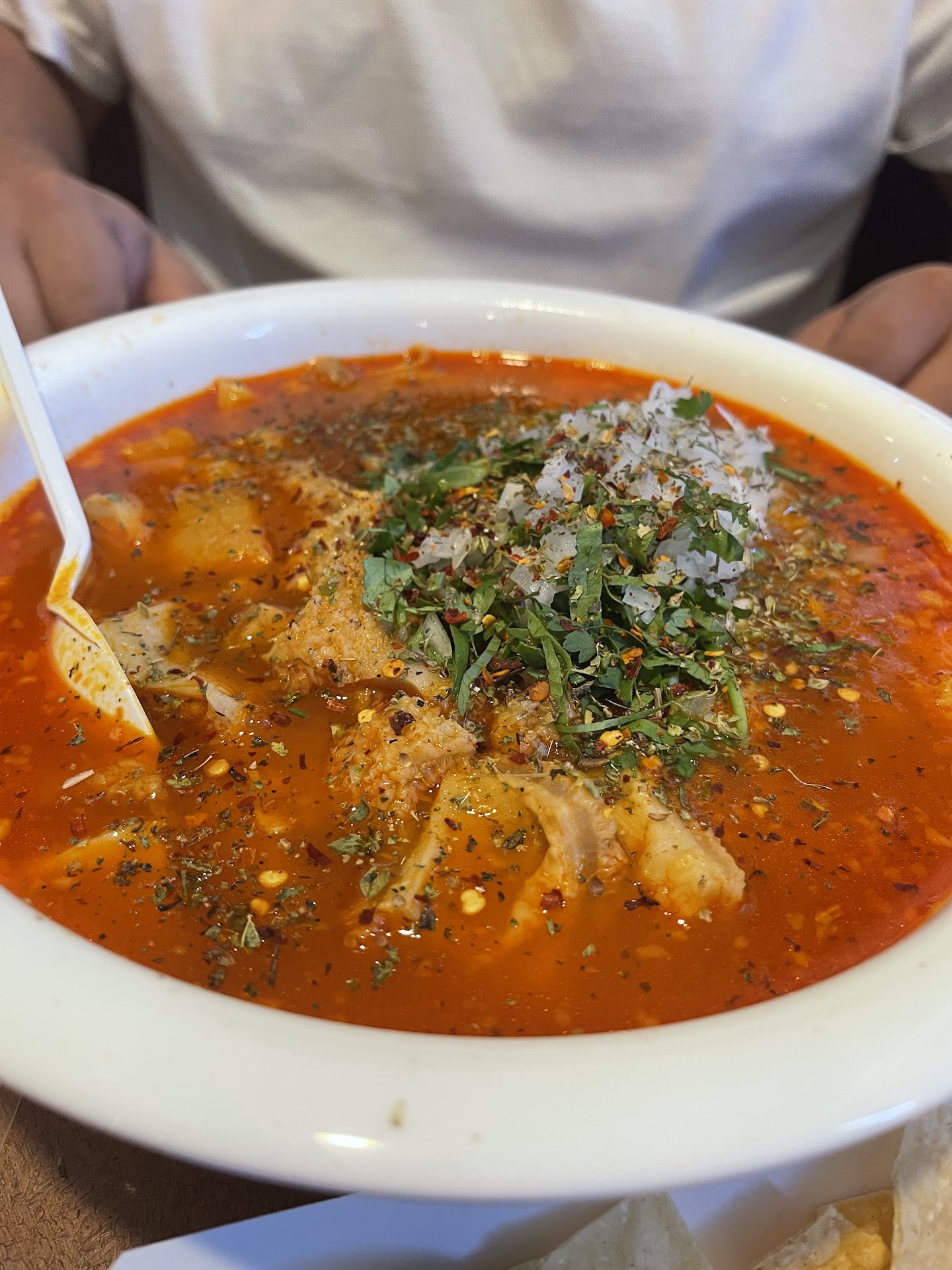 Ā Ā Ā Read moreDisclaimer: this review is primarily based on the service for dine in. We were looking for a good menudo spot and decided on this place based on the reviews and well the name of the place. We arrived around 10:30 and were seated right away. Our food and drink orders were placed and we received our drinks, chips and garnishes almost immediately. We ordered 1 large menudo and a medium menudo bowl, ham and eggs with rice and beans, and chorizo and eggs with rice and beans. Considering that the menudo should already have been made and eggs cook relatively quick we were expecting about a 15-20 minute wait for our food. Instead we waited about 45-50 minutes and only after my father in law got up and asked about the wait. The menudo ended up being OK, not much flavor and the broth was watery but had plenty of meat. The plates with eggs and chorizo on the other hand were really good and the hand made tortillas were delicious. Overall we would not return, the entire time we were eating the waitress only came by once to see if we needed anything and that was after we all finished eating. We noticed that other parties were missing their food as well for long periods of time and the restaurant was not...