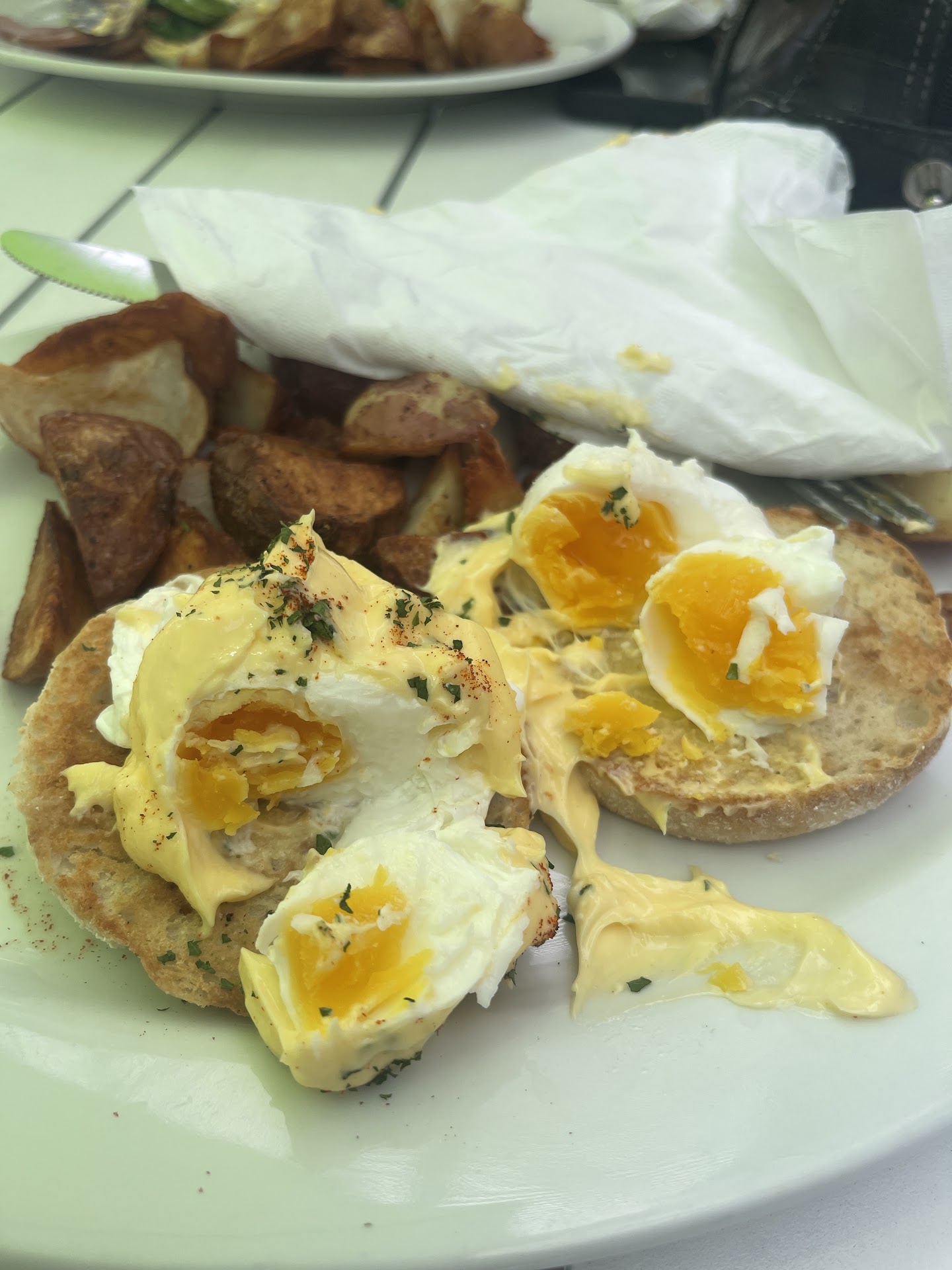 EDIT: after reviewing the reply from the manager, i am lowering my rating from a 2star to a 1 star. Not only was my meals absolutely terrible, but the manager had the audacity to blame me as a customer. Stating “we paid you, we gave you a free meal” i wouldn’t have feed this to my dog. I only tried the food and IMMEDIATELY returned it. My spouse had some avocado and part of the boiled egg bc she dislike conflict. You can go google how a egg Benedict is supposed to look, then check my picturea. What is this boiled egg? They also referred to the 7 minutes…. So to confirm i WAITED 7 minutes BEFORE I DECIDED to STOP sweating and to MANUALLY set up YOUR equipment. YOUR waitress checked in TWICE… ONCE to take the order, and once prior to that( i didn’t see the qr code on the table and didn’t realize i had to scan it) and some random brought us of the food. We understand a busy scenario, but we also been to MANY restaurants. I simply left, went down the street, to a different establishment. Had the SAME exact meal, but the small detail made the experience 100x better. I would have paid for 1 of the entries that was...