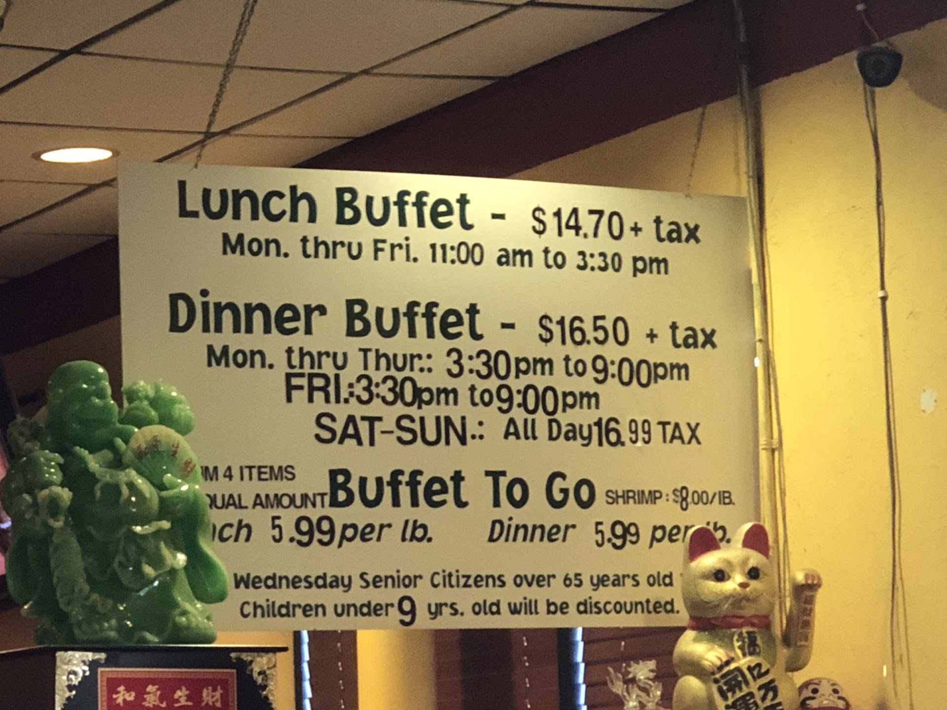 Read moreI donât even know where to begin with .. As soon as I opened the door the lady from across the room asking me if itâs take in or out like let me get first and greet me lol she was doing that to all customers coming in not greeting just yelling from across the room while sitting down . And OMG I paid $16.50 just for me thatâs over priced for a place that donât have good customer service and the food just nasty not tasty at all half way done not a lot of variety I didnât even ate it all and let me tell you this girl LOVES to eat I thought I try that place since is closer to home .. I been to buffets less than this with more variety and food thatâs cook all they way maybe it was more pricey because of the shrimp and crabs legs they had ⊠NOT EVEN they grab legs...