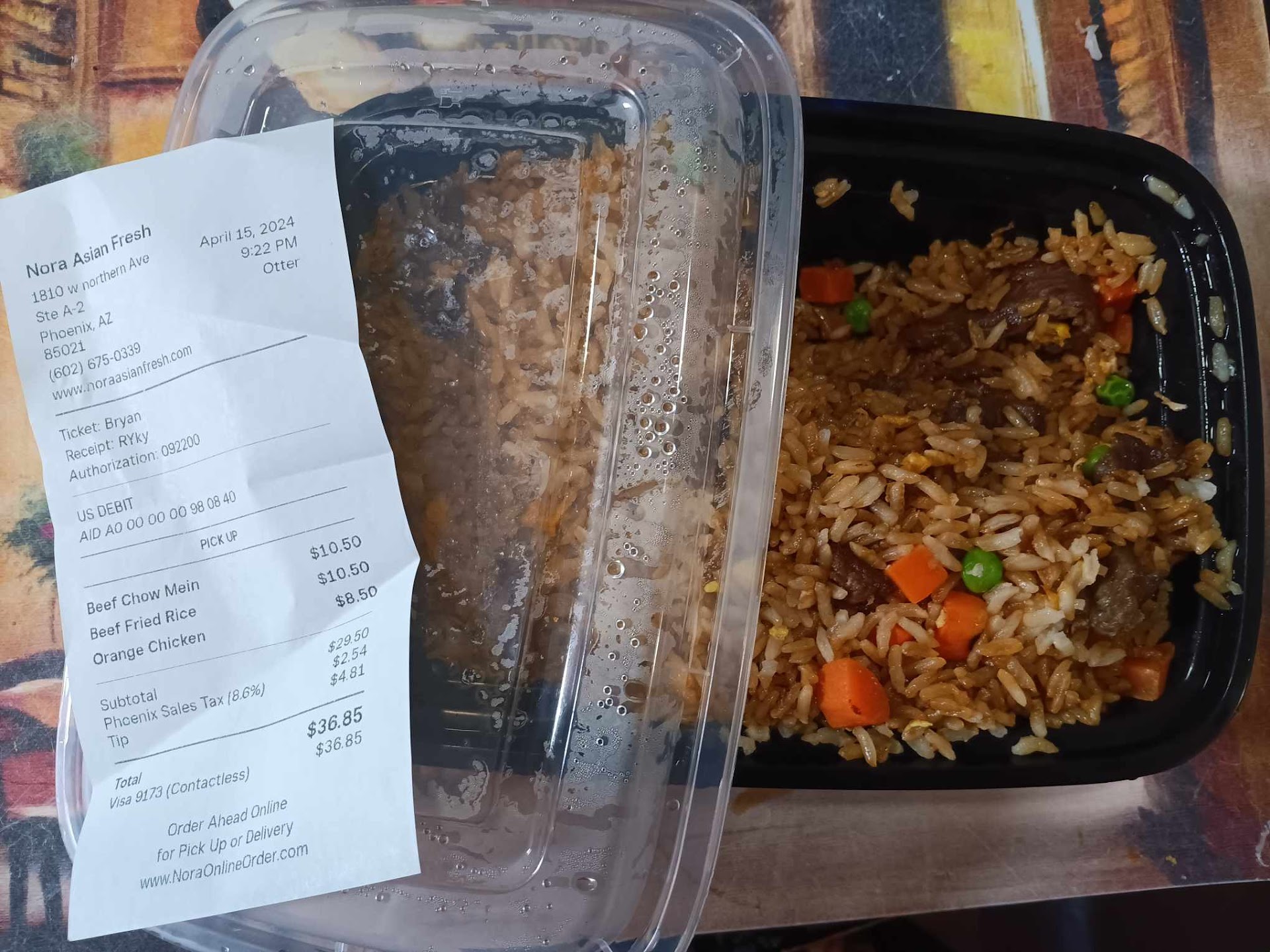 I was excited for a new asian food place @ 19th & northern (considering chen wok has been terrible the few times I went) People often say you can judge asian take out on their Teriyaki/Orange chicken. Got one of each for me and the wife. They are both sub-par. Soggy fried orange chicken and a total lack of their bland teriyaki sauce on the chicken.