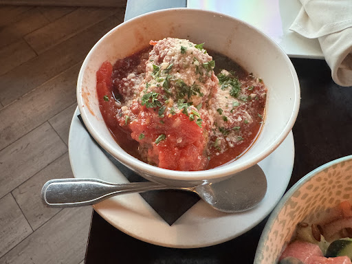Appetizers were meatballs (4 meatballs served in a bowl with tomato sauce, very bland, desperately needed salt), and watermelon salad (also needed a touch of salt to counterbalance the sweetness of the watermelon, which was sweet)