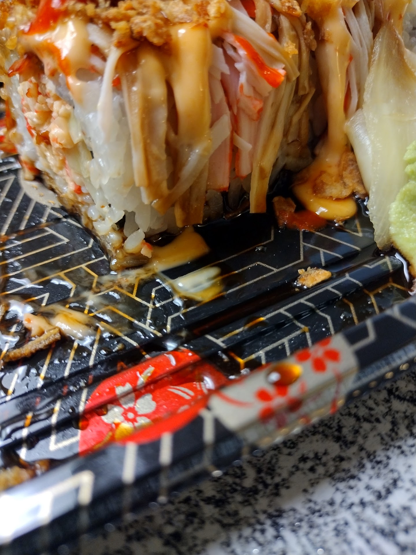 Edamame - Nothing to it, but they didn’t mess it up Chicken Gyoza - Deep fried froze dumplings - and yummy like a fast food indulgence Tonkatsu Ramen - OK, but our noodles were kinda overdone (tough to do as takeout) Pork Katsu - OK. A little tough, but tasty (note: sauce is on the meat, not on the side, so time matters as the breading soaks up the sauce and texture is lost) Chicken Chow Mein - familiar, greasy Chinese takeout noodles - again, pretty yummy Tempura Philly Roll - So-so. Shoulda looked closer. Their Philly is a California Roll + cream cheese (expecting salmon, like most sushi places i’ve been). Sauce (eel + thousand island-ish) was a bit too generous tempura style. Spicy Beef Bowl - Beef was a bit tough (stewed, not stir fry), but it was tasty. CAUTION: Spicy = hot as hell. The chili sauce comes on top/side of the rice so you can control. I mixed in all of it… bad call. This was like specifying Thai hot at local Thai places. Had to grab gym towel a...