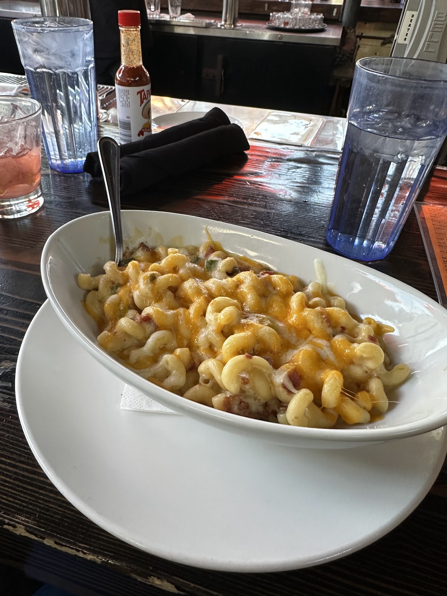Now, onto the food—chef’s kiss! I ordered their mac and cheese and personalized it with bacon and jalapeños. It was rich, creamy, and absolutely bursting with flavor. The bacon added the perfect crunch, and the jalapeños brought just the right amount of heat. We also tried the chicken and waffles, and wow—crispy, fluffy, and perfectly balanced with the sweet syrup and savory chicken. Talk about comfort food done right!
