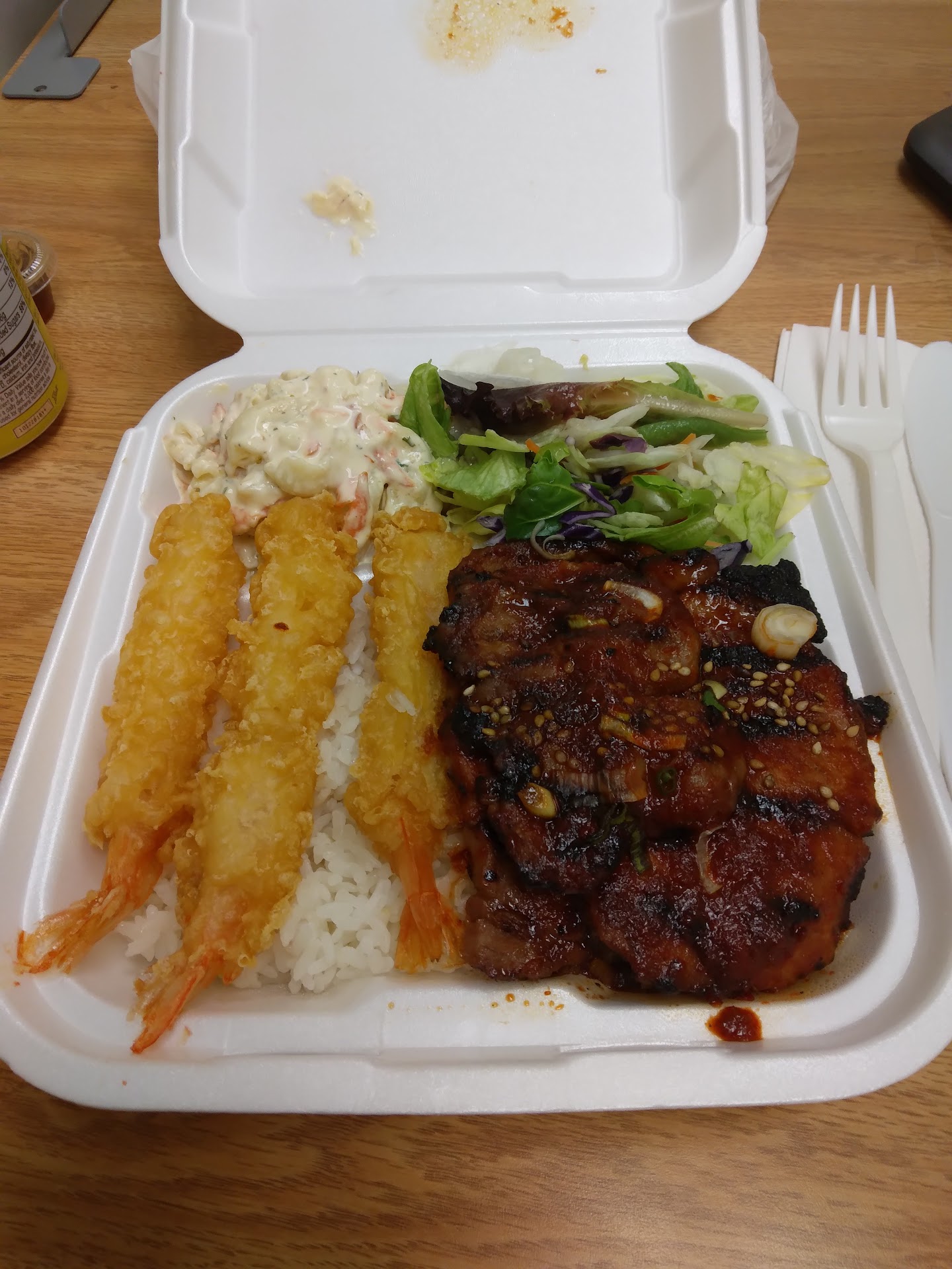 The Fish Jun and Shrimp Tempura were both.... basic. The Fish Jun was an incredibly small portion, kind of soggy, and mostly flavorless. The shrimp tempura wasn't crunchy either. My co-workers ordered meat dishes and they looked amazing. Giant portions, they smelled wonderful, and they had nothing to say but good things.
