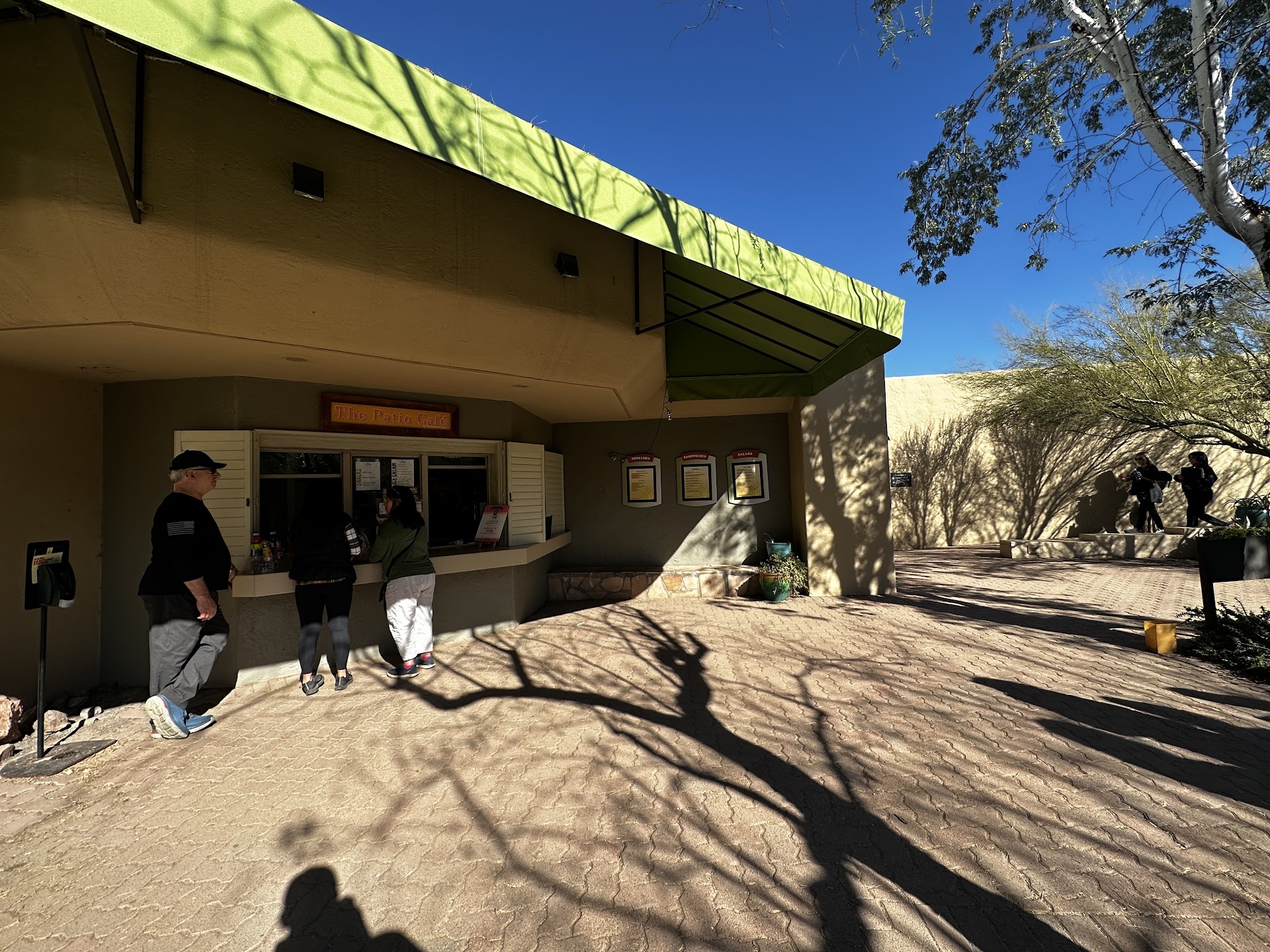 Delightfully surprised by this gem of a snack bar/cafe nestled in the Desert Botanical Garden! The menu offers good variety and the food was fresh. In particular, the salads were special and interesting. The kids meal was generous, though it would be great if it included a little drink. Decent patio but it fills up quickly during busy periods. There is also additional seating around the corner. Above all, the service was exceptional! I had to wait a bit longer for my food (someone behind me in line took my order) and the staff comped me a giant, fudgey brownie for the trouble. I LOVE that the employees are empowered to make decisions like that. Customer service is the backbone of any business. If I could make one recommendation, it would be to have a better system for calling out orders during busy times because it's rather haphazard as is. Highly recommend an affordable and tasty lunch here if you're exploring...