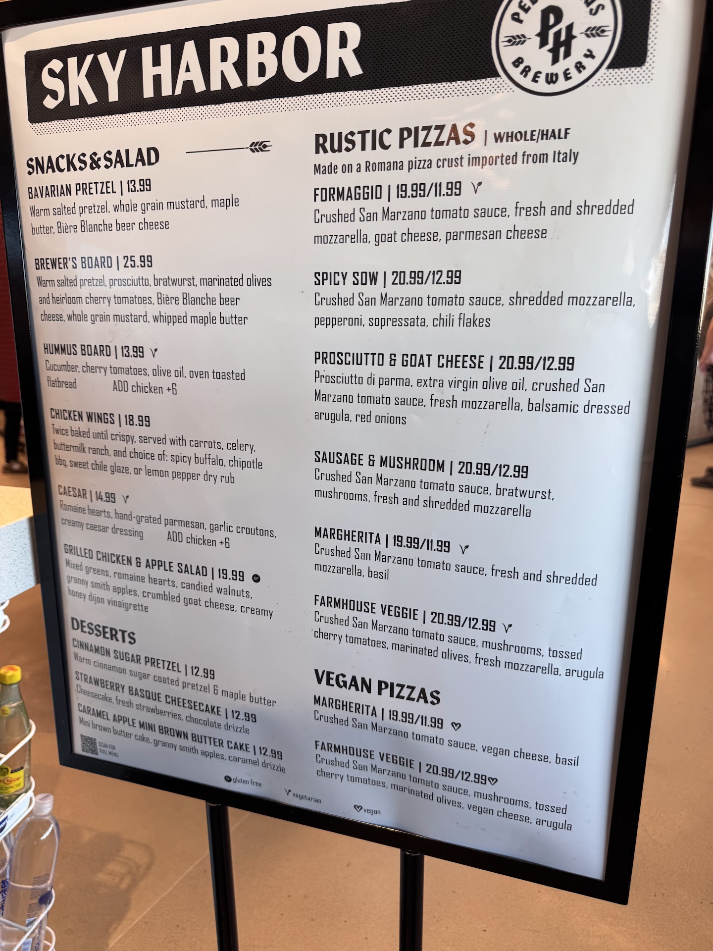 Read moreWe stopped by Pedal Haus Brewery at Sky Harbor during our layover and were pleasantly surprised by how great everything was! We ordered the lemon pepper dry rub wings and the Formaggio pizza—both came out fresh and extremely hot from the kitchen, and everything was super tasty. The wings had the perfect amount of seasoning, and the pizza was cheesy, crisp, and full of flavor. The seating area is shared with other spots in the terminal, so you just place your order, get a number, and they’ll bring your food out and find you wherever you’re sitting. Super convenient and well-organized! Great service, delicious food, and an awesome spot to relax...