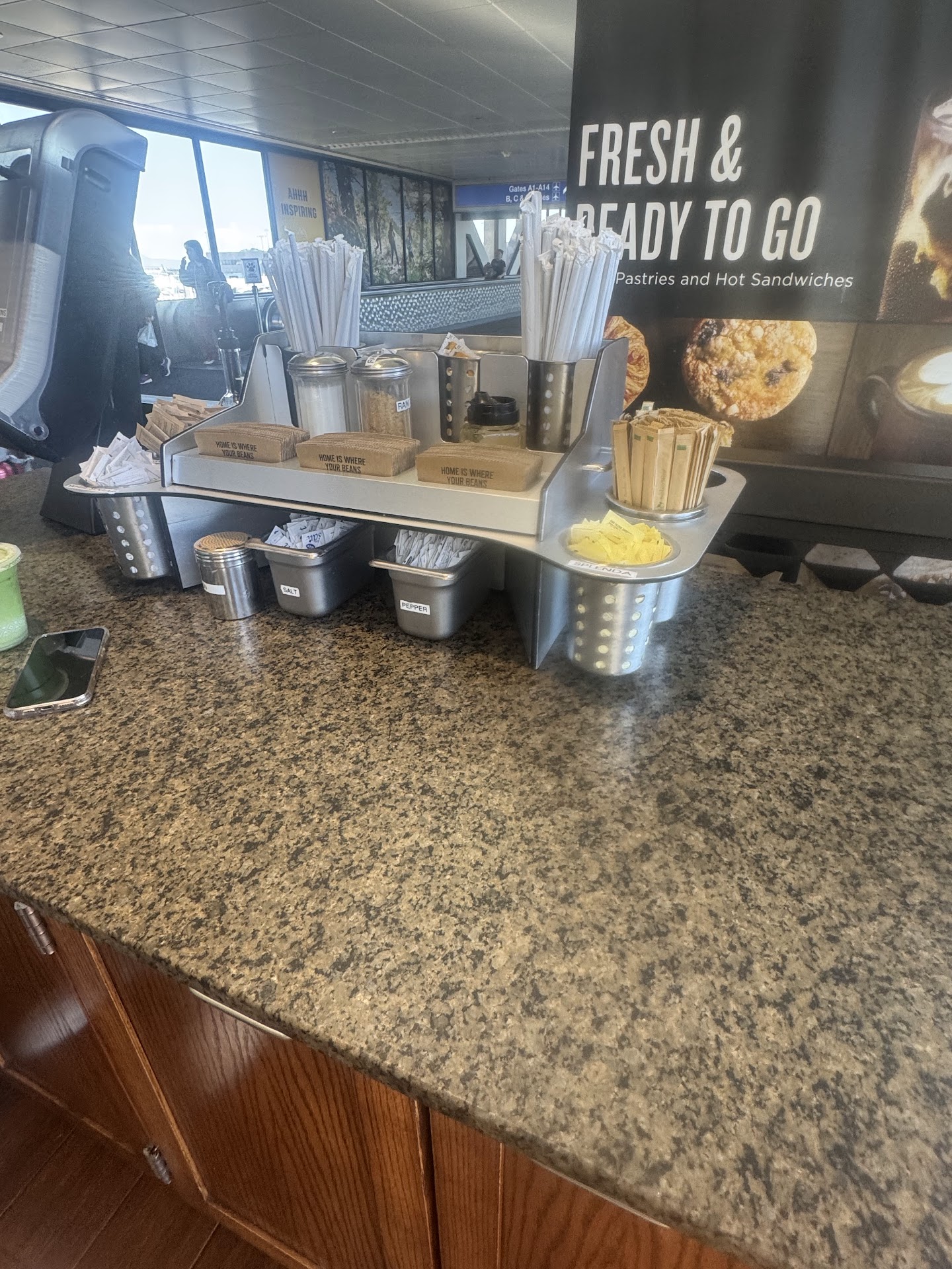 Ā Ā Ā Read moreQuick service today for hot tea, cold brew, and a chocolate cholate chip muffin which they heated up in line with the sign that said they would do that. The hot tea is great but the taste of the cold brew was flat. They gave kind Ā® bars, popcorn and other single serving size snacks Tbe signage is very good with dark letters on white background on the wall. The line and the checkout counter is accessible. Seating includes low seats looking out over the AirPort and a tall bar for standing on one side and seats on the other side. Near gate A17 The pastry selection is great with big huge offerings. Accessible restrooms near...