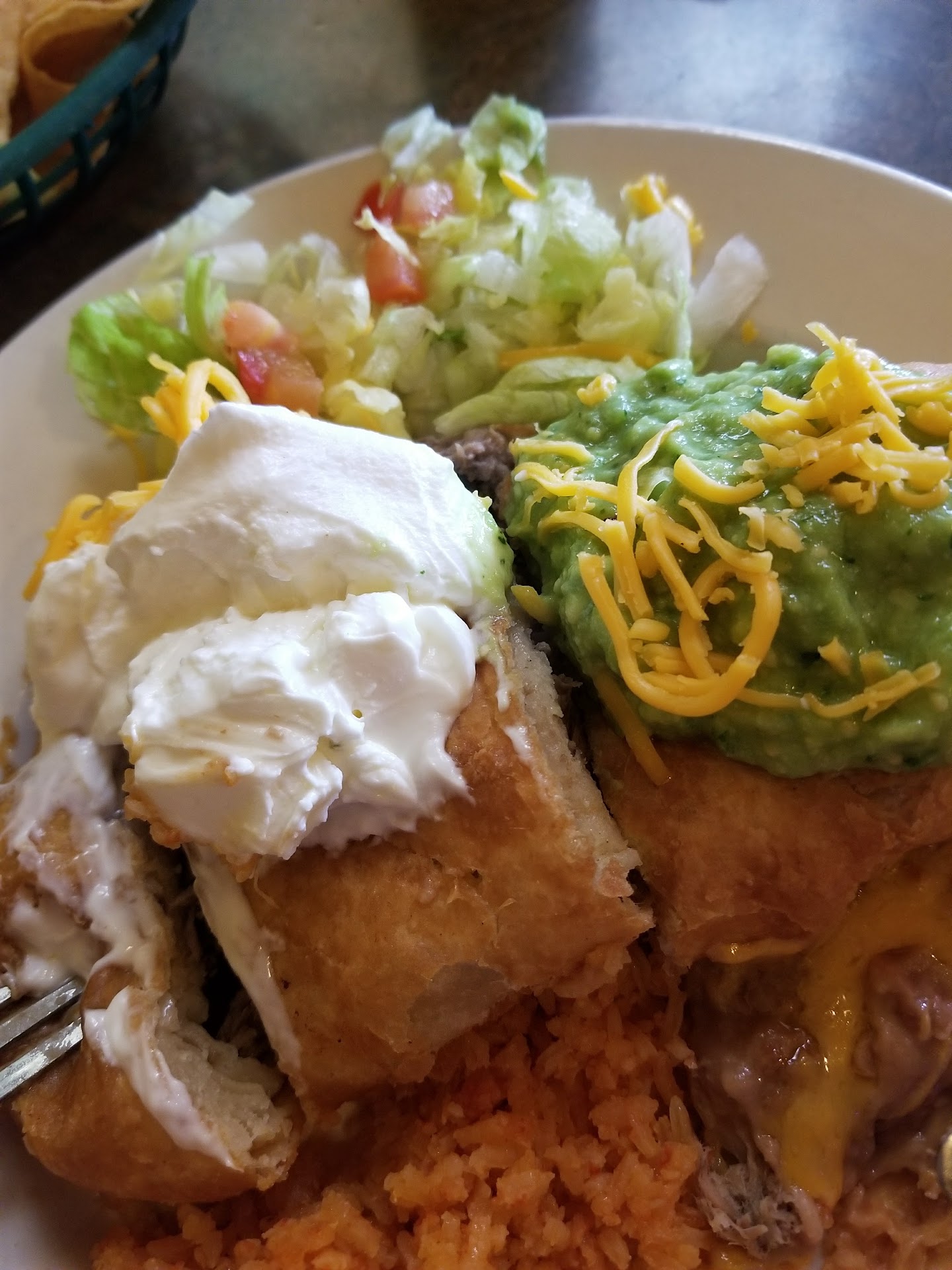 Read moreI took my niece, who was in the middle of a family crisis, and her God Mom, a long time family friend, here on recommendations of the god mom, as her new boyfriends family owned the restaurant. We needed a quiet place to figure things out, talk and share a decent meal. The owner, mother of the god mother's new boyfriend, talked at our table more than I could. I didn't have time to talk to my niece and figure anything out, the owner hovered and asked a barrage of very personal questions, like where we live, work, intend on doing, asked about our spiritual beliefs, pressed my niece (who did not know this woman) for all her personal information and problems, then prayed repeatedly for us. When she finally left, her son pulled me to the bar to talk about my families personal business, right beside their guests. When I was able to sit again, the owner comes back to re interrogate my wife and I, and when we finally told her this was a family matter that we haven't even been able to talk about, she became very indignant, huffy and finally excused herself. Now we can talk about food. By far, easily THE WORST Mexican food I've ever had in Phoenix.I ordered a carne chimi, on suggestion of the owner. The meat was not marinated, just heavily over salted. The tortilla had zero crunch anywhere, it was soggier than a burrito enchilada style that you left in the pass to long. I made it halfway through my burrito before I found a hair on my plate, and that's where I stopped. The beans were almost done cooking, but they weren't there. My niece got the carne asada fries, took three bites and made the same observation about the meat, and said the fries were greasy and soggy. My wife got the tostada that she couldn't eat, as her anxiety was piqued over being preached over while we were trying to deal with a very personal family matter. 1 chimichanga, 1 tostada and 1 carne asada fries, $54. Save your stomach and go to a Bertos,...