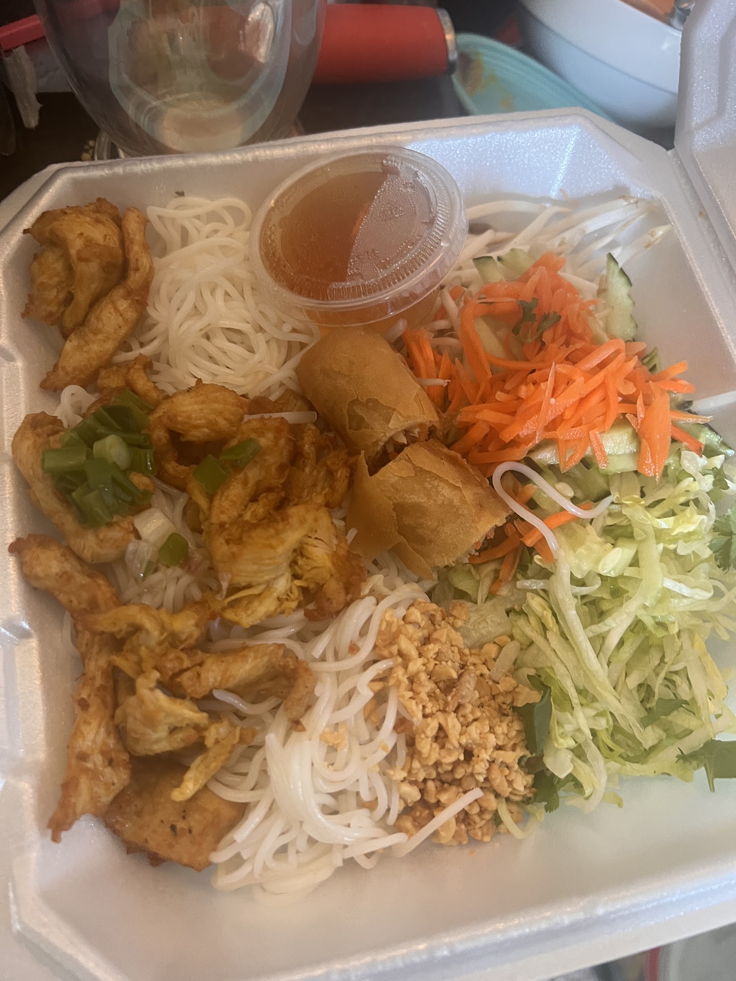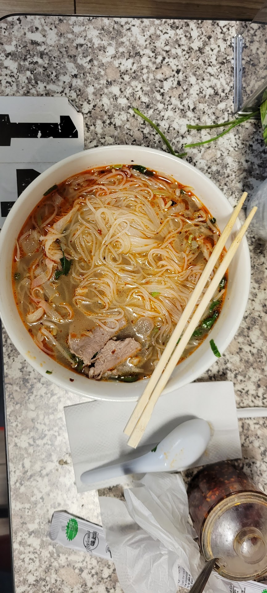 Read moreCame upon this place because the other place we were looking at was closed. Upon arrival we were asked for there or togo, the place had a couple of other parties already so we took our time looking at the menu to order togo. We had a fairly large order, a couple of soups, appetizers, and thai teas. It was quite quick service and when they brought the meals out they asked if we needed help figuring out which dish was which. I said we could figure it our on our own, but that was a mistake. Three of our soups were missing ingredients, and that would have been caught if we checked the meals with her when she asked. I feel like I can't be too upset because the dishes we ordered would have costed the same as the dishes we got, so we didn't go back. However, overall the rare steak pho was delicious. The broth was rich and flavorful. The shrimp egg rolls were crisp, seemed smaller than expected. The spring rolls with pork and shrimp were a little sad, kind of tasted like they were pre-made a day ago or the rice wrap wasn't soaked for long enough, but the peanut sauce was perfect. Even with the missing brisket and steak from the dishes we still managed to come out of this meal...
