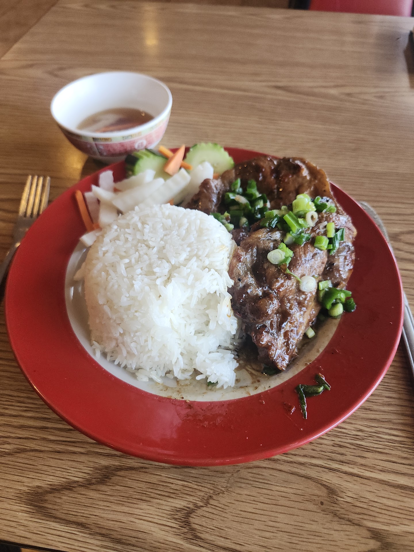 Read moreI asked the the server who was the lady what her favorite food was and it was a pork and rice dish that she added an extra piece of meat to and it was absolutely delicious and the portion of rice to Pork was perfect. If there had been less meat it wouldn't have matched up properly. I added the hot sauce and the plum sauce to the rice and mixed it all together. It was very reasonably priced and absolutely amazing. And they also have their $6 Vietnamese sandwiches that are delicious as well the last time I was there I tried...