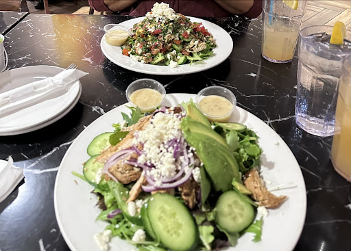 When we were walking in from the parking lot to this restaurant, we were expecting to walk into a small Mediterranean restaurant. However, once you are inside the restaurant and as the hostess walks you in to your table, you are all of a sudden in a very large, extravagant and elegant restaurant – that somewhat takes your breath away! The ambience was fantastic and the mood was casual and inviting! There are beautiful paintings on the wall from local artists that are for sale. This convinced me that the owners of this restaurant truly cared about the community and are promoting the local talent. To say the food here was fantastic would be an understatement! Everything was perfectly prepared and authentic! Some of the dishes were of Mediterranean ā€˜fusion’ of either Indian or Southwestern flair. For appetizers, we ordered the Baba Ganoosh, this eggplant dish was prepared with the perfect balance of garlic, and olive oil. The pita served on the side tasted and felt fresh. I ordered their wood fired Norwegian salmon. It was one of the best prepared salmon dishes I’ve had. It was cooked to the perfect doneness with a nice crust all around. You know it was fresh when you can peel the sections of the flesh off with your fork, and those sections just glisten. Every bite was a pleasure on the tastebuds. My wife had the Kofta Beef pizza. It too was out of this world with fantastic flavors in every single bite. The they give you so much food and the prices are quite reasonable too. Our server Melanie was fantastic as well. She was very efficient, attentive and had friendly. She was simply awesome with her service! I also got to meet the manager, Jake, who went from table to table everything was to the customers’ satisfaction. I highly recommend this restaurant and the experience here. I know I plan to visit this restaurant next time I am in Phoenix, Arizona.